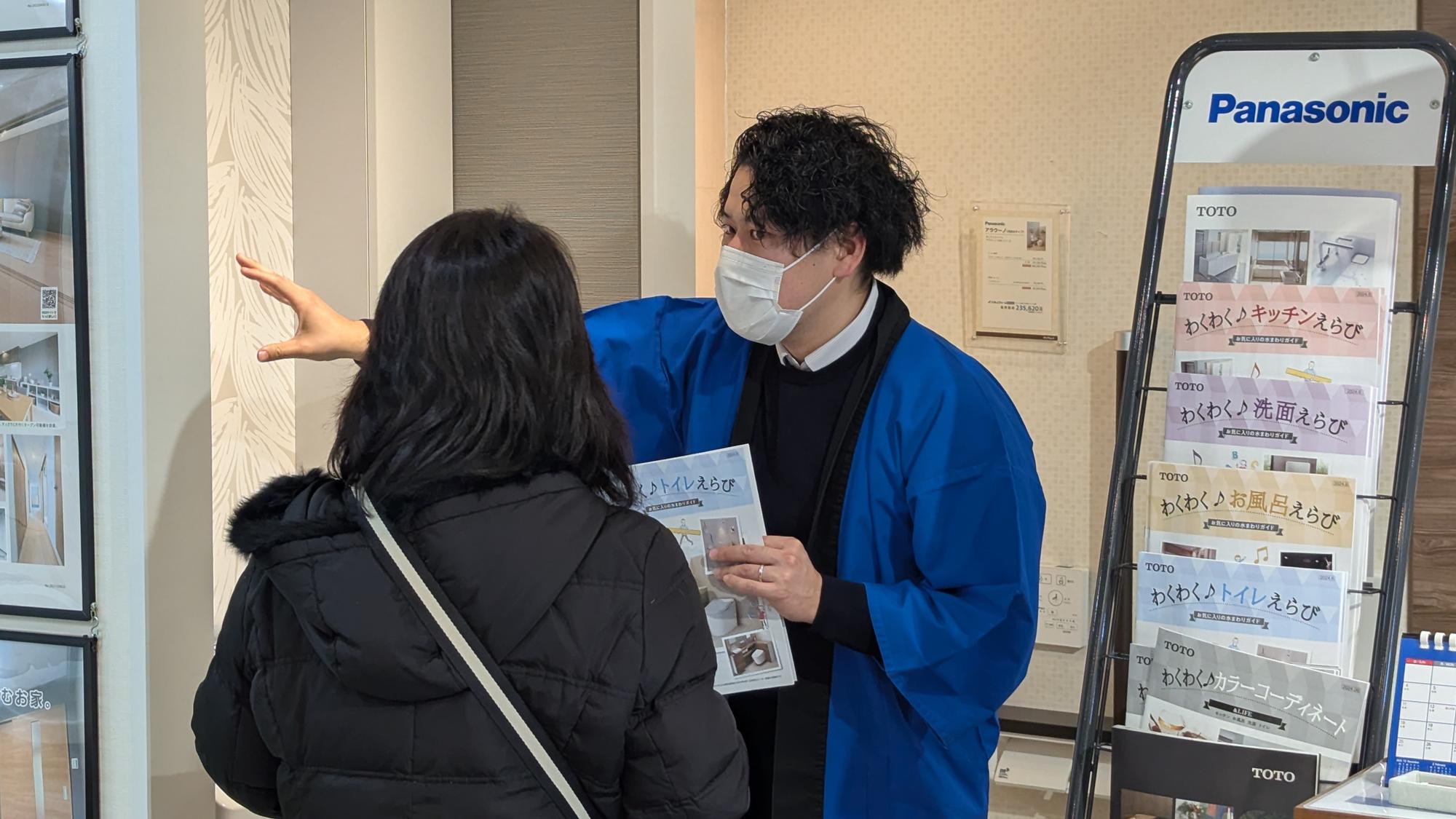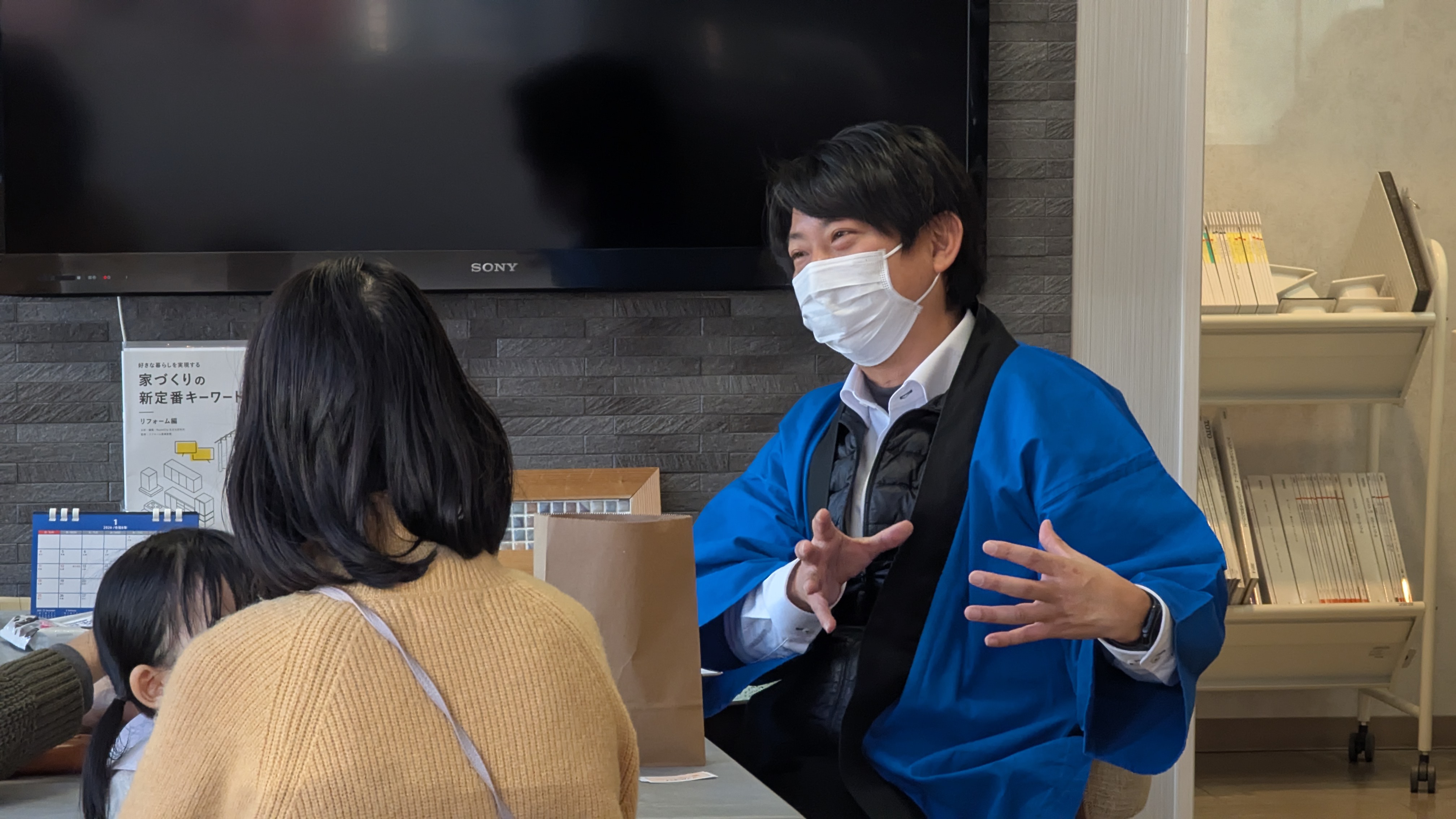 | 当日は寒さの厳しい中、十数年前からお付き合いのあるお客様をはじめ、新たにご来店いただいたお客様まで、3日間で『延べ133組』の皆さまにお越しいただき、会場は大盛況となりました。各種イベントの実施や、複数メーカーのご協力による最新機器の展示により、会場は終始活気にあふれ、リフォームに関する具体的かつ熱心なご相談が多数寄せられました。 |