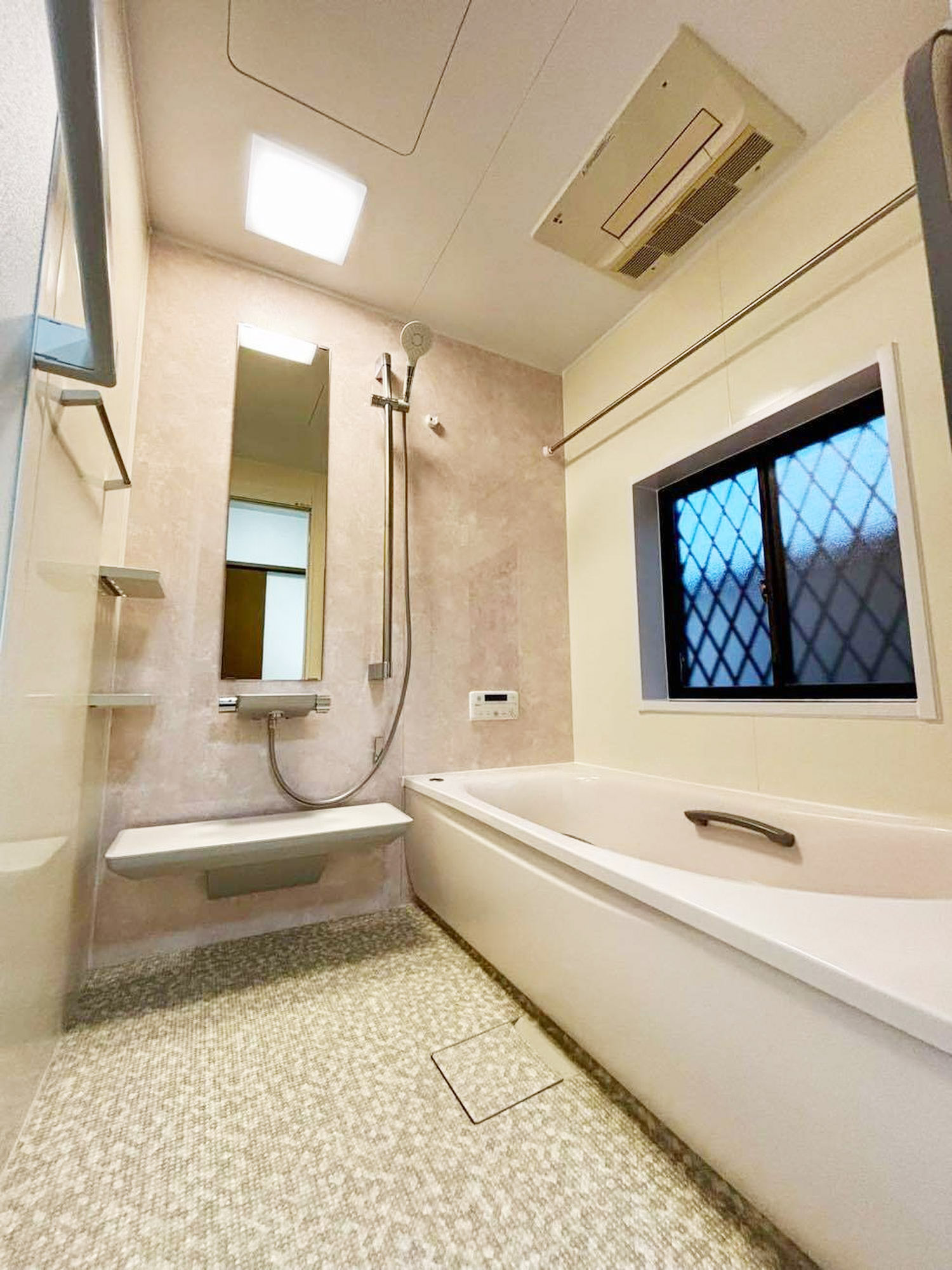 明るさと清潔感を兼ね備えた、毎日の入浴が楽しみになるバスルームです。断熱性の高い浴槽とほっカラリ床により、冬でも暖かく快適。ピンクカラーでありながら落ち着きのある色味のため、甘くなりすぎず上品な空間に仕上がりました。