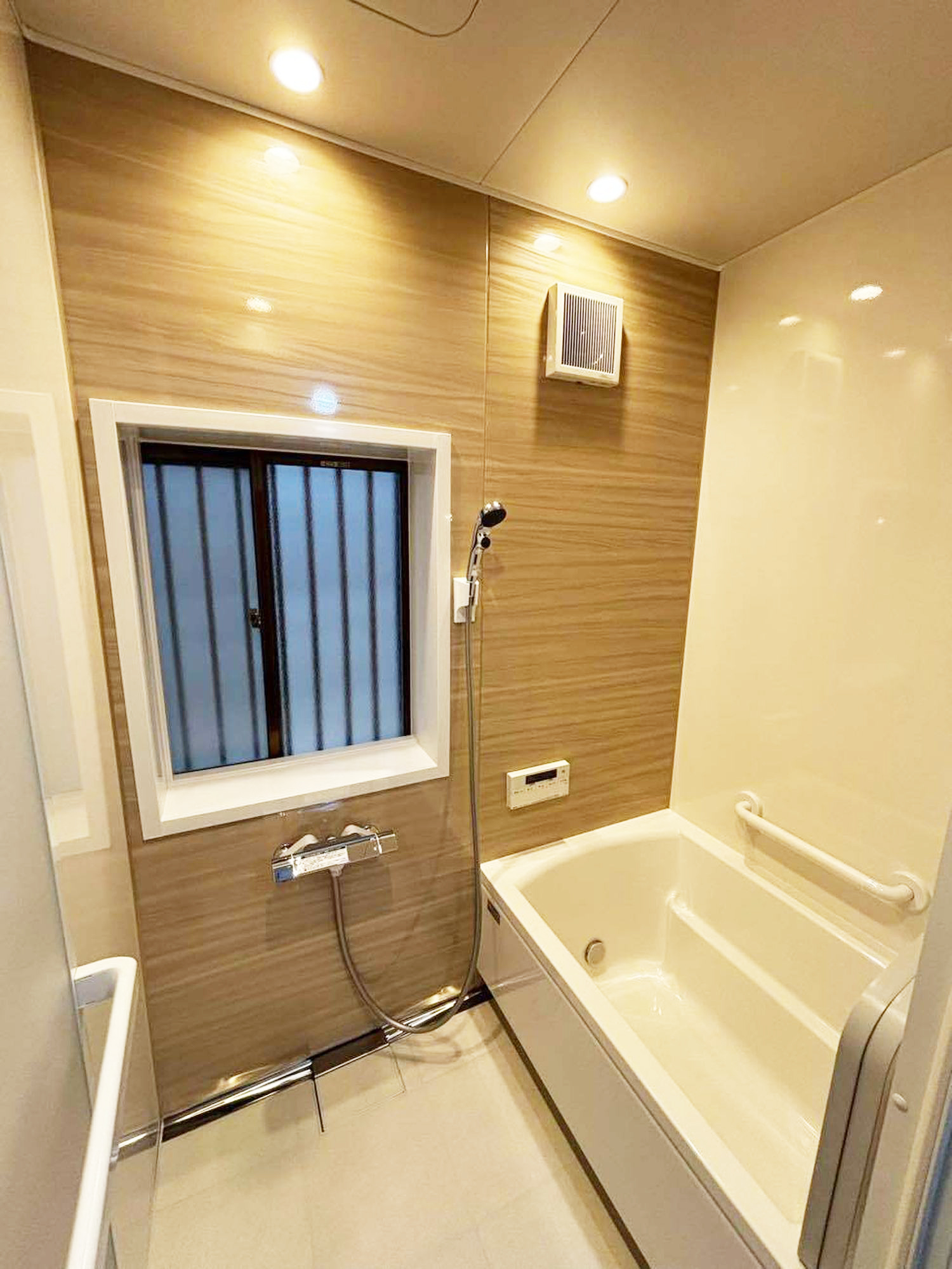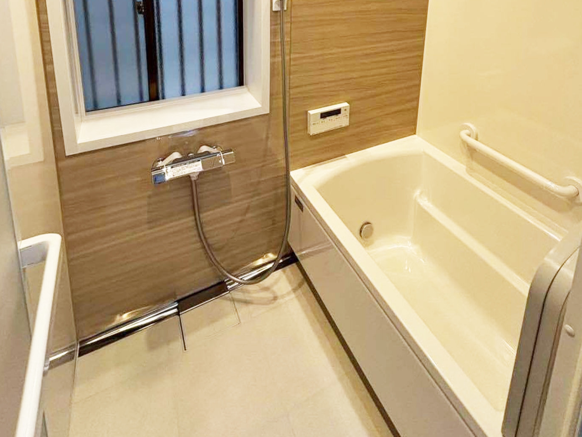 | 担当者からのひとこと | 落ち着いた木目調パネルとやわらかな照明が空間全体を包み込み、毎日のバスタイムを心地よい癒しの時間へと演出しています。窓まわりはすっきりと納めつつ、しっかりと採光を確保。明るさとプライバシーを両立しました。清掃性に優れた素材とシンプルなレイアウトにより、日々のお手入れもスムーズに。機能性とデザイン性を両立した、長く快適に使える浴室へと生まれ変わりました。 |