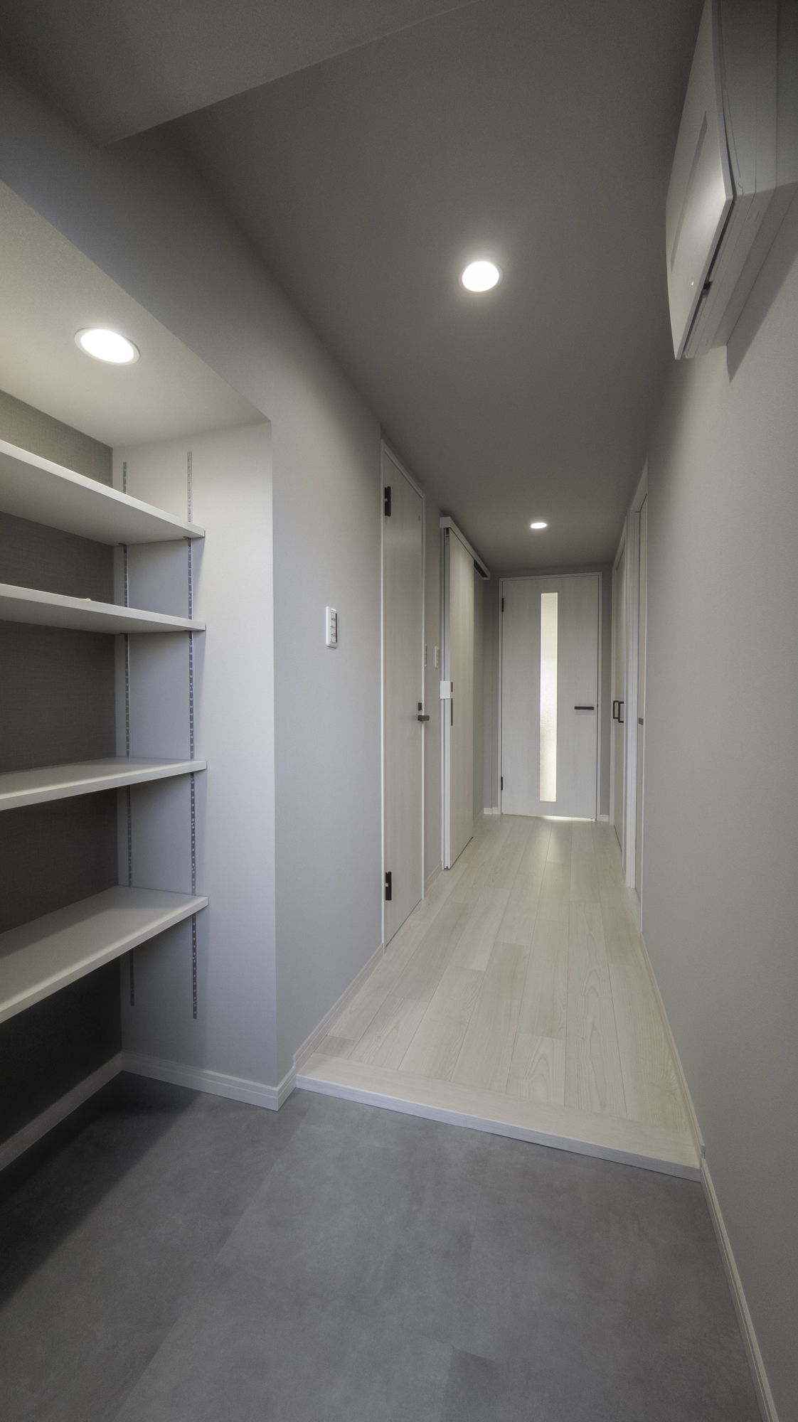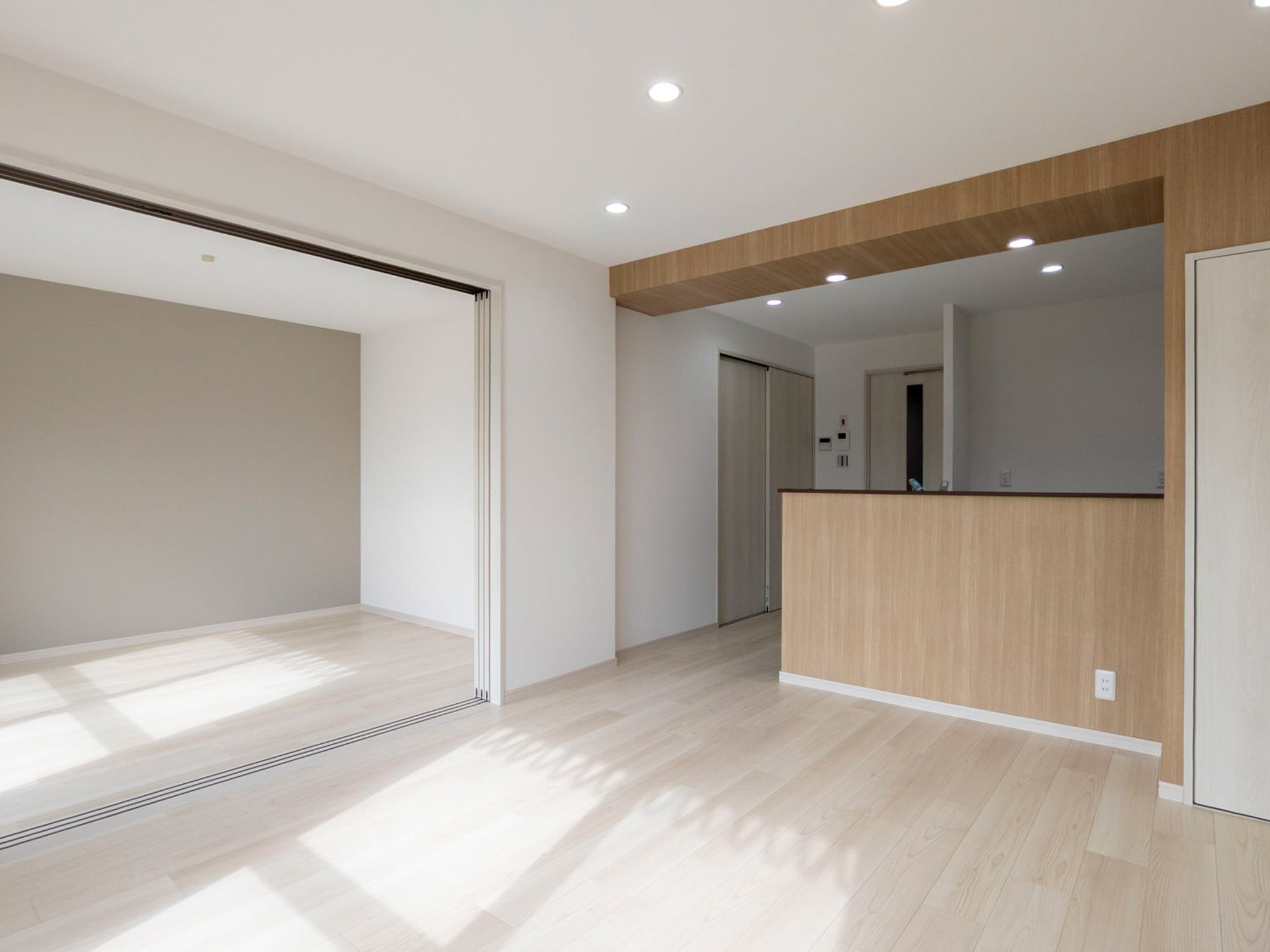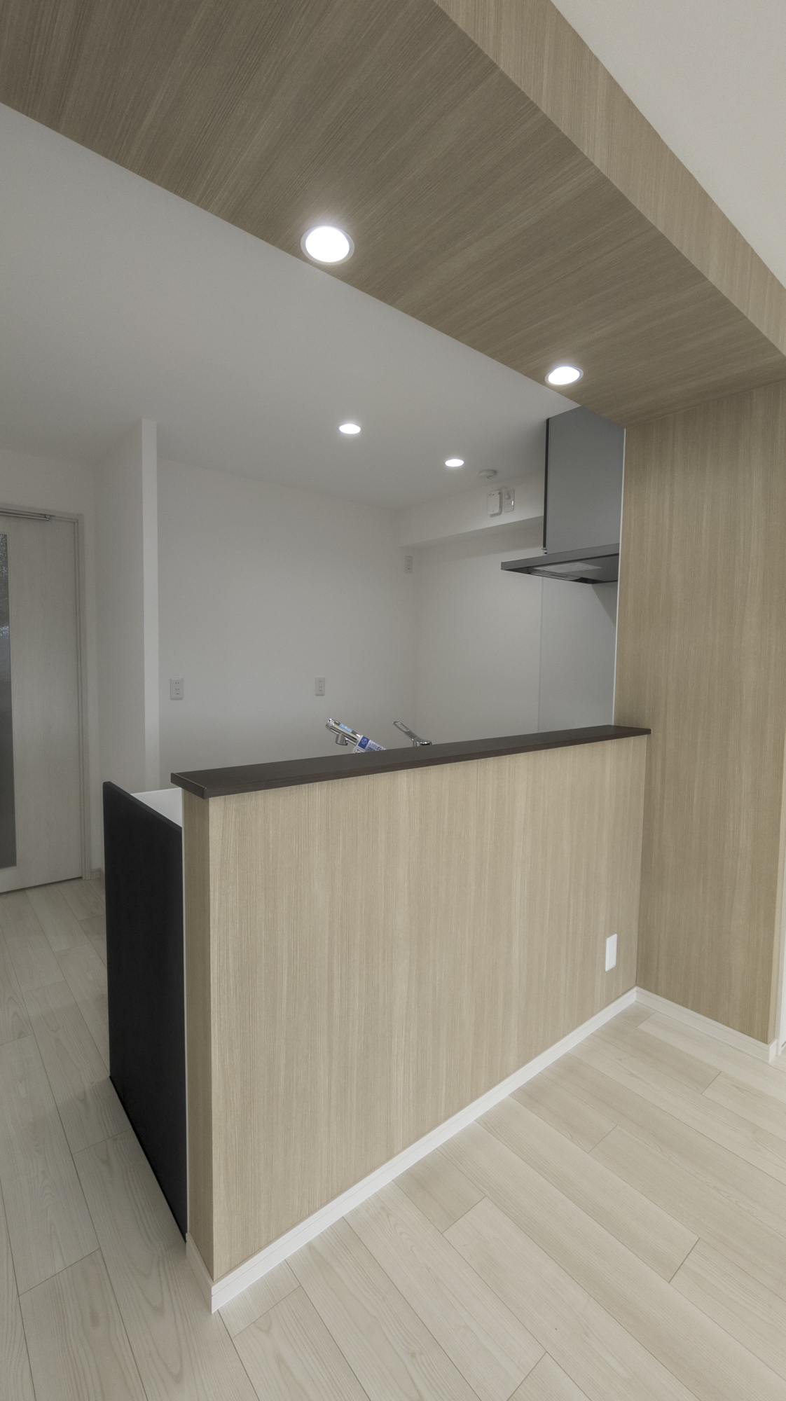 | 担当者からのひとこと | 傷みの目立つ築約50年のマンションをリモデル。明るい空間にキッチンの濃い色味がアクセントとして映え、洗練された印象を演出。ニュートラルな内装は、どんな家具とも美しく調和します。また、大胆な間取り変更によりウォークスルー動線を実現し、風が通り抜ける開放感と家族の繋がりを両立。機能美と心地よさを兼ね備えた、空間全体を上質な空間へと一新しました。 |