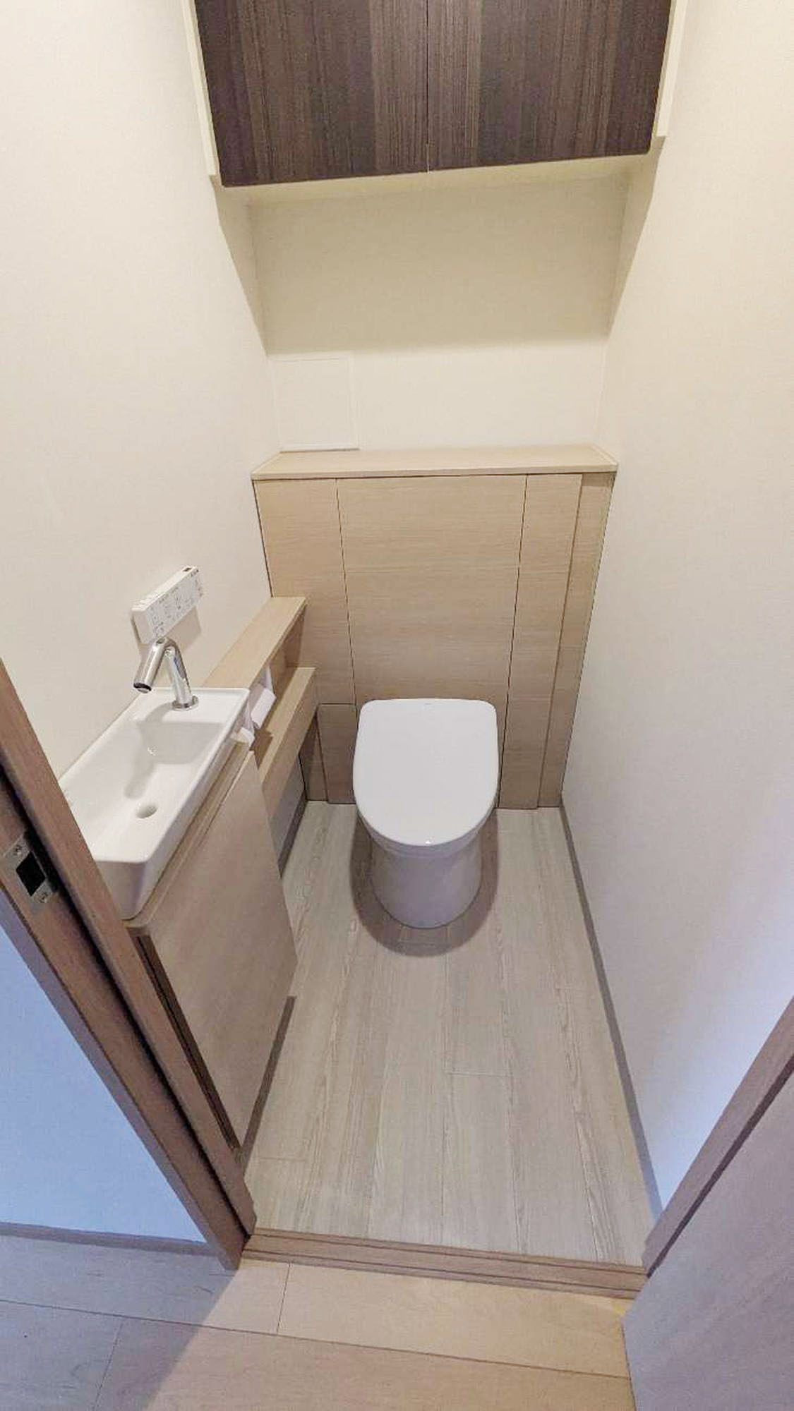 | 使用材料 | 【床】朝日ウッドテック MSXネダレス145 for Dog ハードメイプル /【建具】LIXIL ラシッサ (色:クリエオーク) /【収納】南海プライウッド ノエル3 /【浴室】TOTO マンションリモデルバスルームWY (お掃除浴槽・床ワイパー搭載) /【トイレ】TOTO レストパル |
