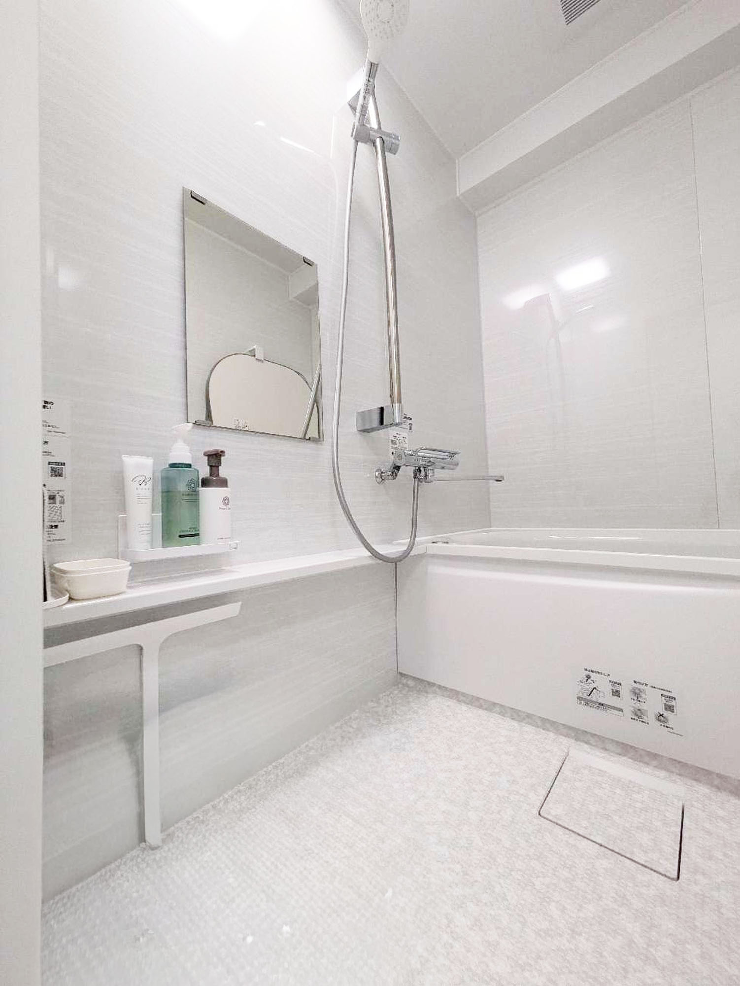 | 担当者からのひとこと | 最新機種へ入れ替え、浴室全体がまばゆいほど明るい空間に生まれ変わりました。壁はリフルホワイトを4面に採用し、光をやわらかく反射する清らかな印象に。床はホワイトラグ調で、足元まで明るさと清潔感をまとわせています。「明るいお風呂にしたい」というご希望に寄り添い、すっきりと心まで晴れるようなバスルームが完成しました。 |