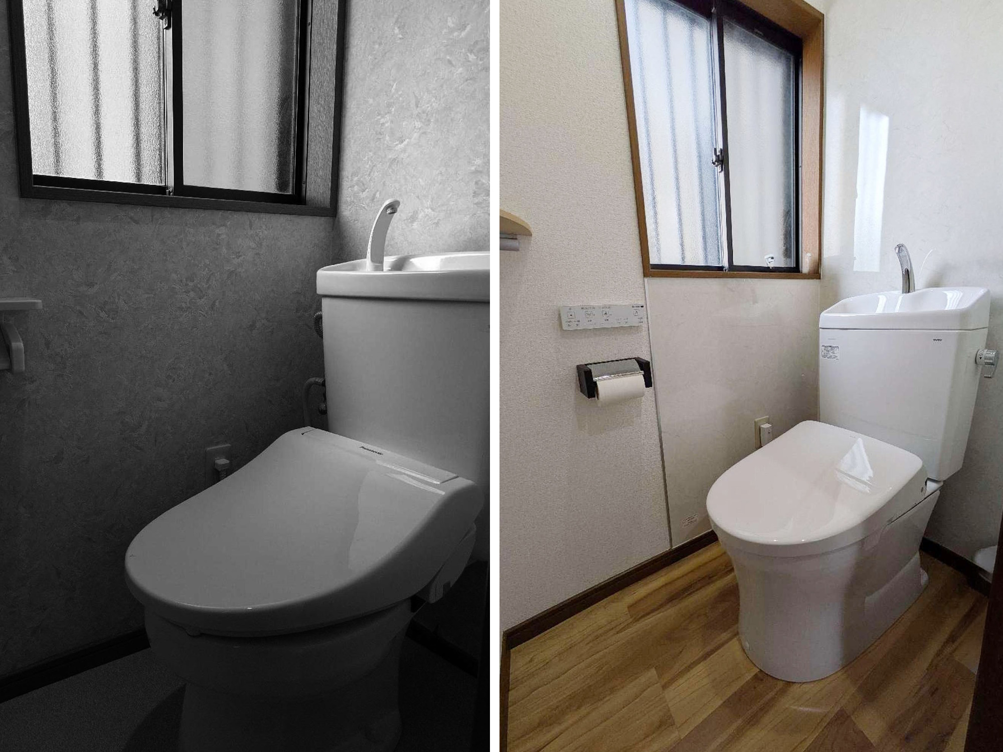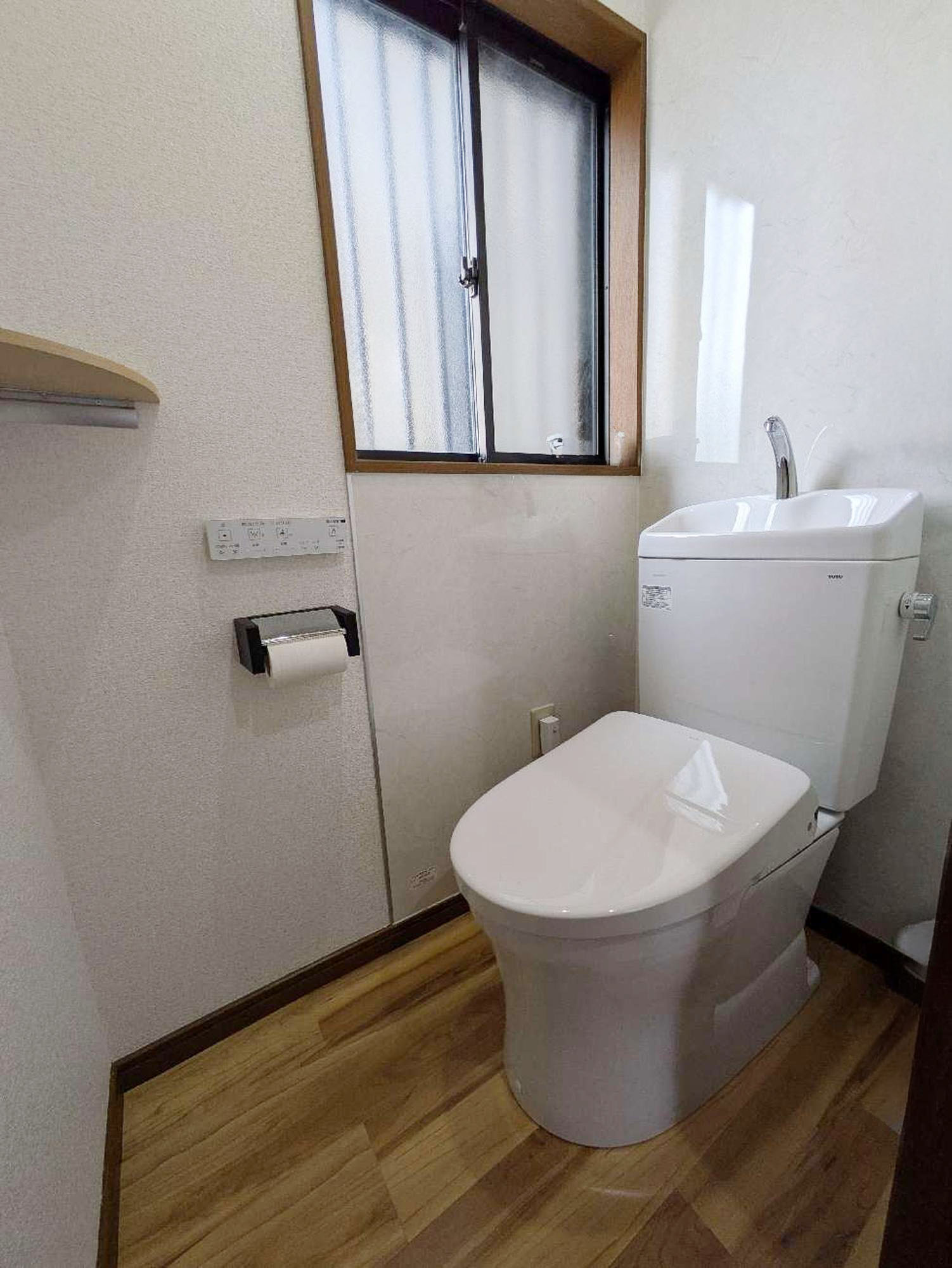 最新機種のトイレへ入れ替え、使い勝手と清潔感を向上させた今回のリフォーム。水はねによる汚れを防ぐため、壁の一部をコの字型にパネルで施工しました。水や汚れが染み込みにくく、拭き取りも簡単なため、日々のお手入れがぐっと楽になります。
