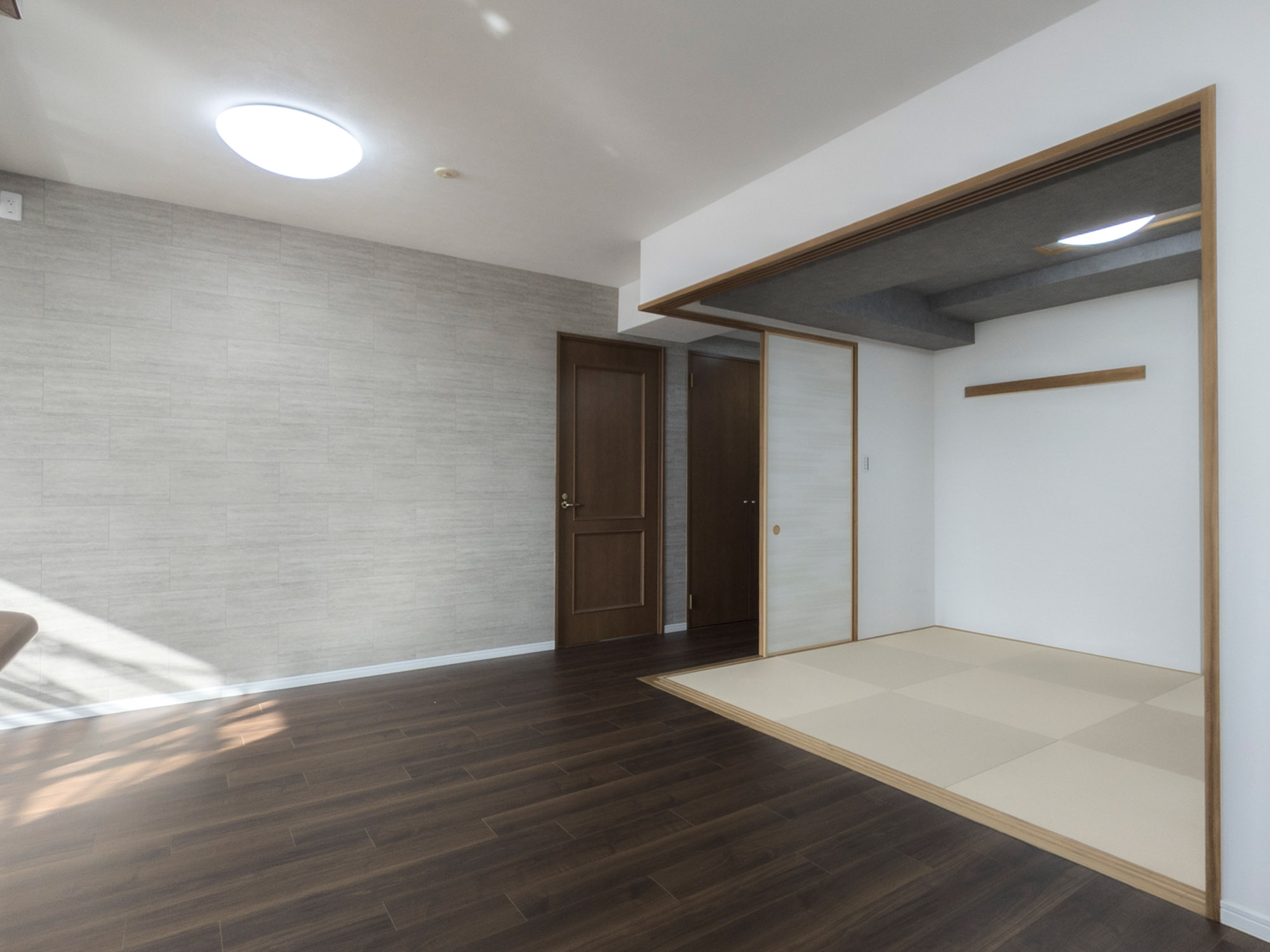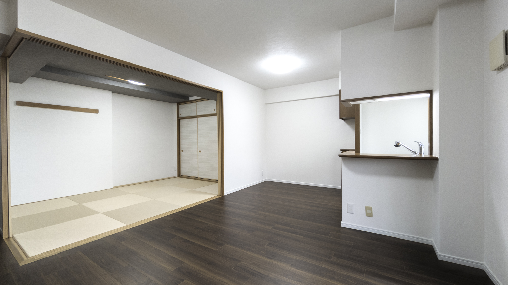 | 担当者からのひとこと | 築約25年が経過し、傷みが目立ち始めたマンションを、間取りはそのままに設備と内装を一新して現代風の住まいへと蘇らせました。深みのあるウォールナット柄のフローリングが空間を引き締め、落ち着いた印象を演出。キッチンや洗面、浴室などの水回りは、限られたコストの中でも清掃性と使い勝手に優れた最新モデルを厳選しています。機能性とデザインを両立させ、低コストながらも明るく開放的で、日々の暮らしが格段に快適になる空間へと生まれ変わりました。 |
