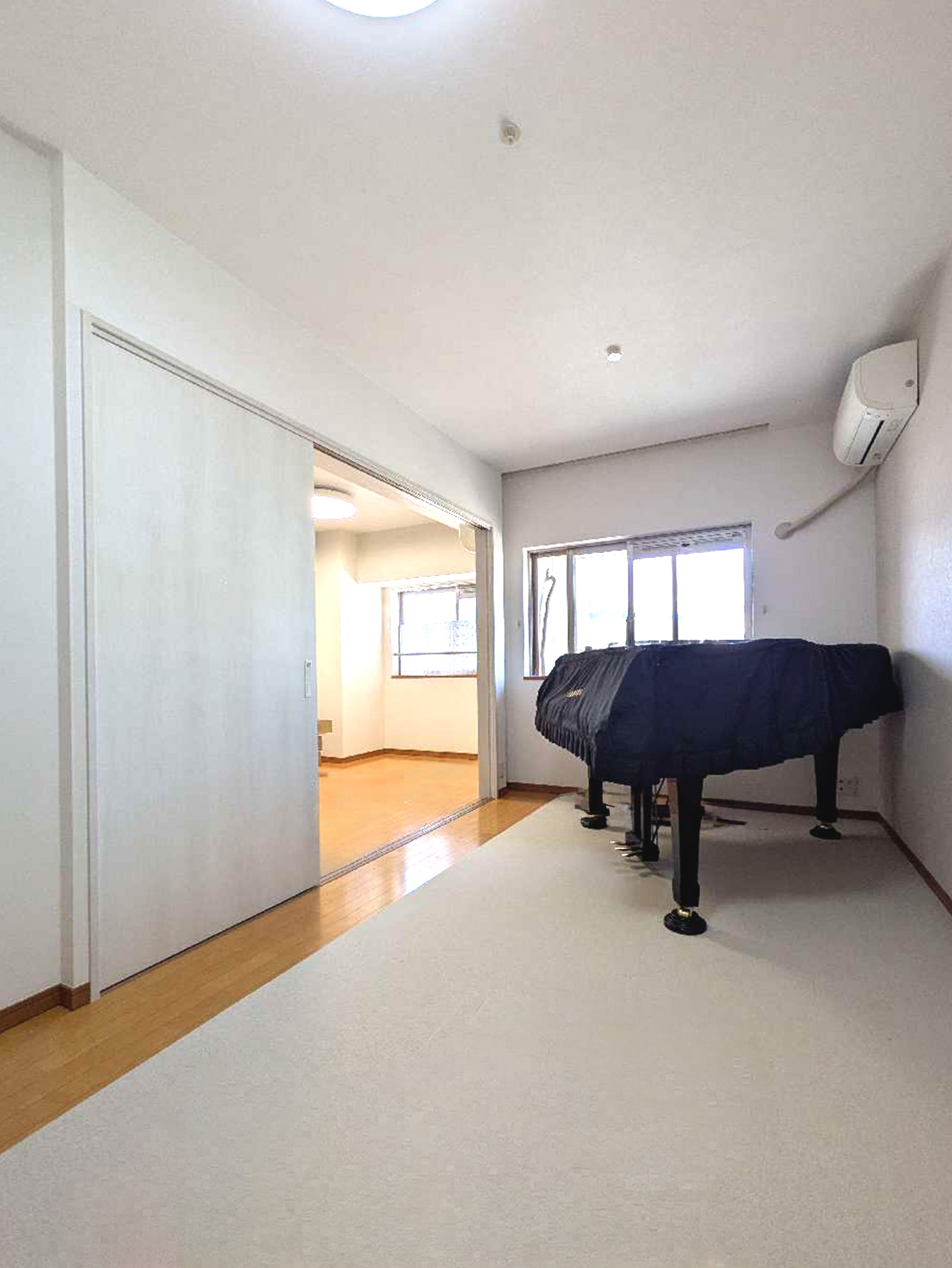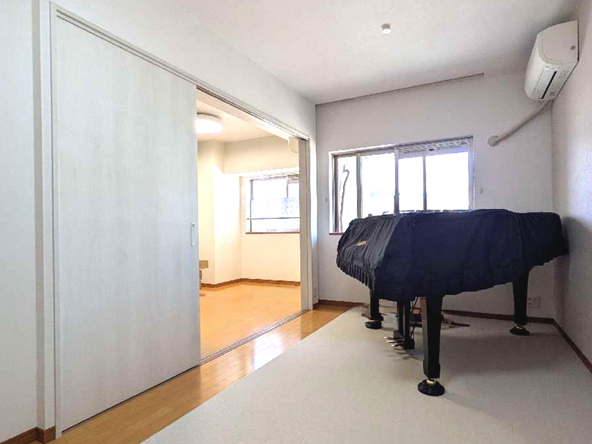 | 担当者からのひとこと | 「今の部屋のドアからは、グランドピアノが入らない……」そんなお悩みを、間取りの工夫で解決しました。2つの洋室を仕切っていた壁を撤去し、新たに開口の大きな「2枚片引き戸」を設置。ピアノの搬入を可能にするだけでなく、扉を開け放てば、2間をつないだ開放感あふれる大空間に。普段は扉を閉めて個室として使いつつ、シーンに合わせて空間を自在に広げられる、機能的で温かみのある住まいに生まれ変わりました。 |