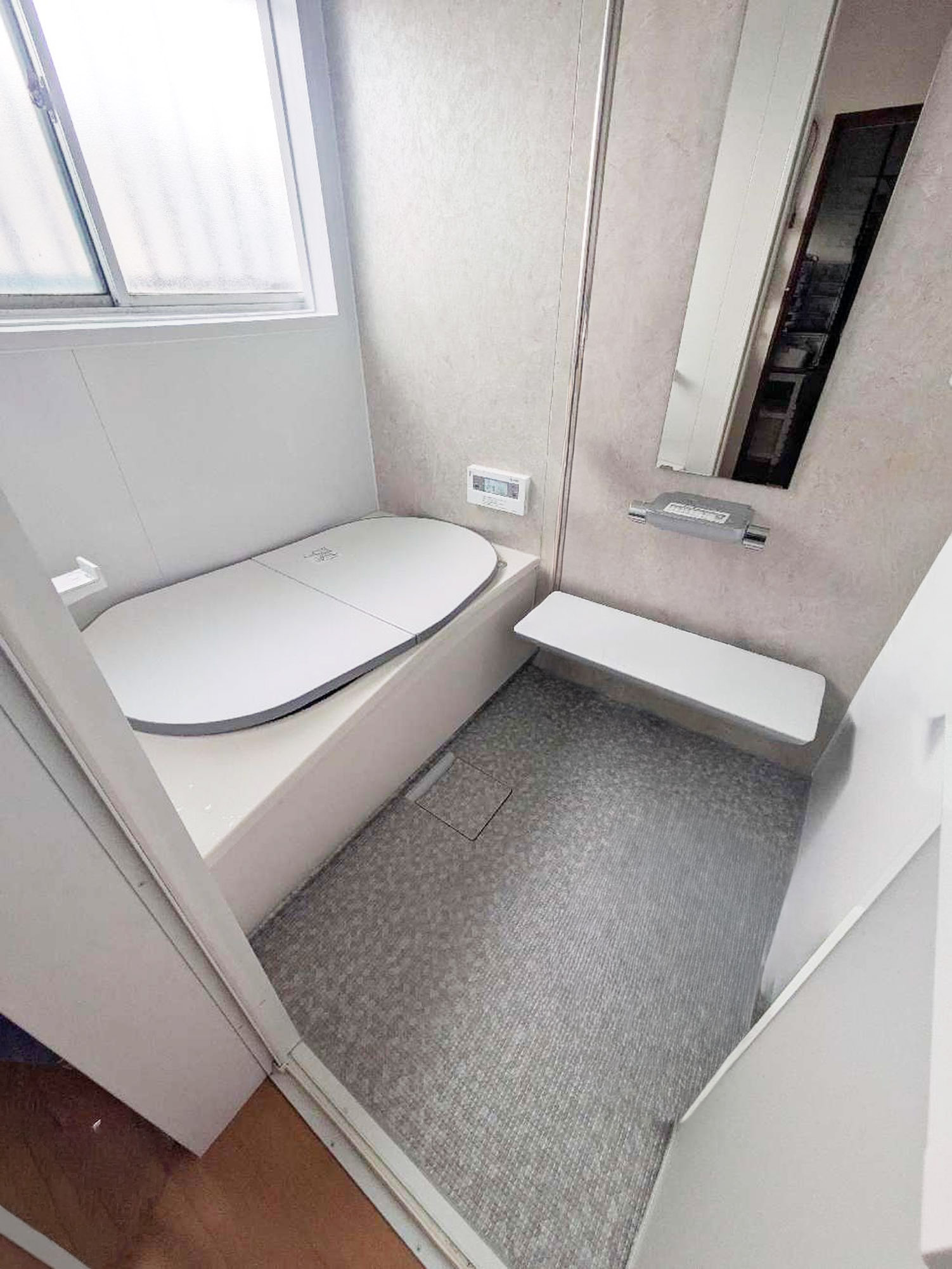 | 担当者からのひとこと | 既存の浴室を、快適性と使いやすさを高めたシステムバスへ入れ替えました。足元がやさしい踏み心地の床や、汚れが付きにくくお手入れしやすい設備を採用し、毎日のお掃除の負担を軽減。浴槽はゆったりと身体を預けられる形状で、入浴時のくつろぎやすさにも配慮されています。断熱性にも優れているため、冬場でもあたたかく、安心して使える快適なバスルームへと生まれ変わりました。 |