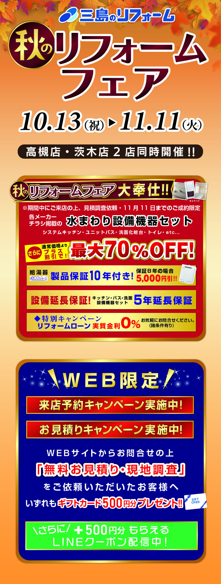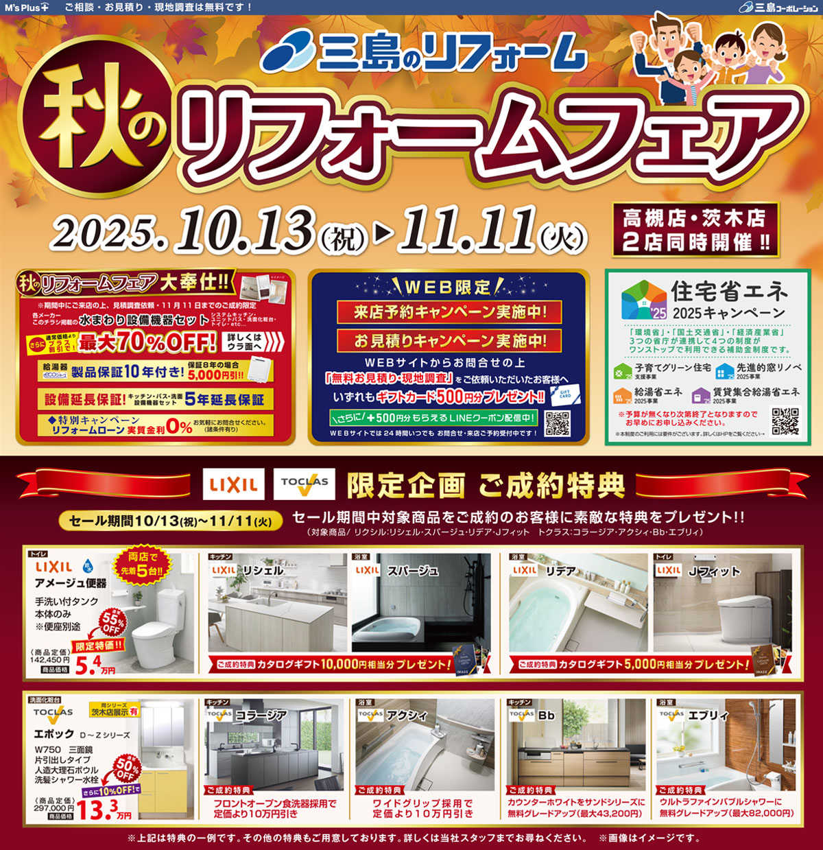 今がお得!秋のリフォームフェア [茨木店・高槻店 2店舗同時開催]