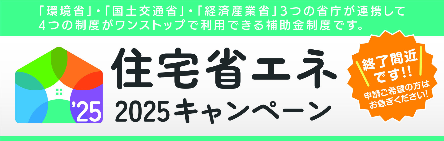 新築とリフォームを対象にした4つの補助事業により、家庭部門の省エネ化を促進します。一部の新築住宅を除き、子育て世帯に限らずすべての世帯が対象になります。 ※2024年11月22日以降の工事着手物件からが対象となります。 ※予算がなくなり次第終了 もしくは 2025年12月31日で申請受付終了となりますのでお早めにお申し込みください! ※本制度のご利用には要件があります。詳細は各事業公式ホームページでご確認ください。