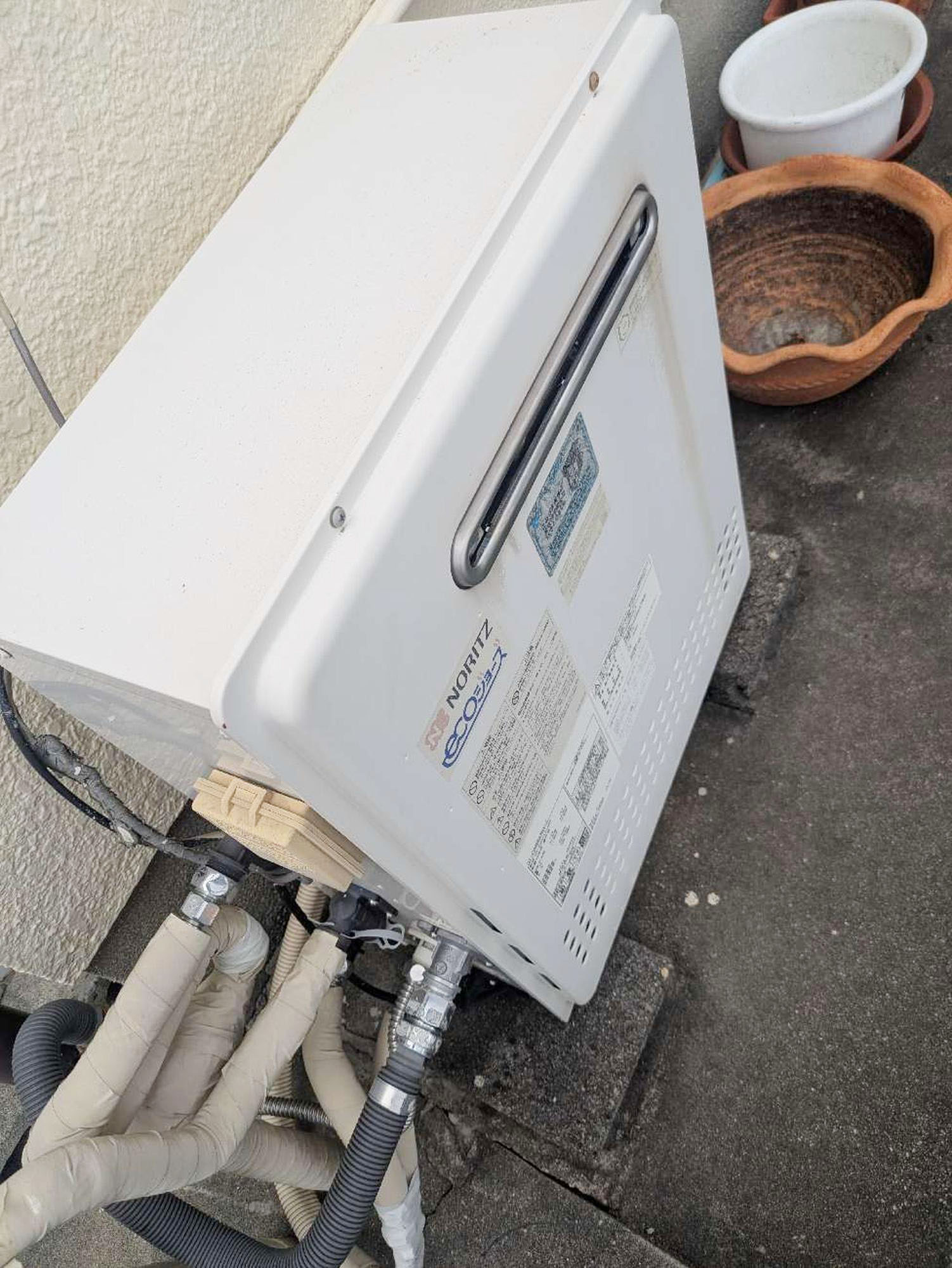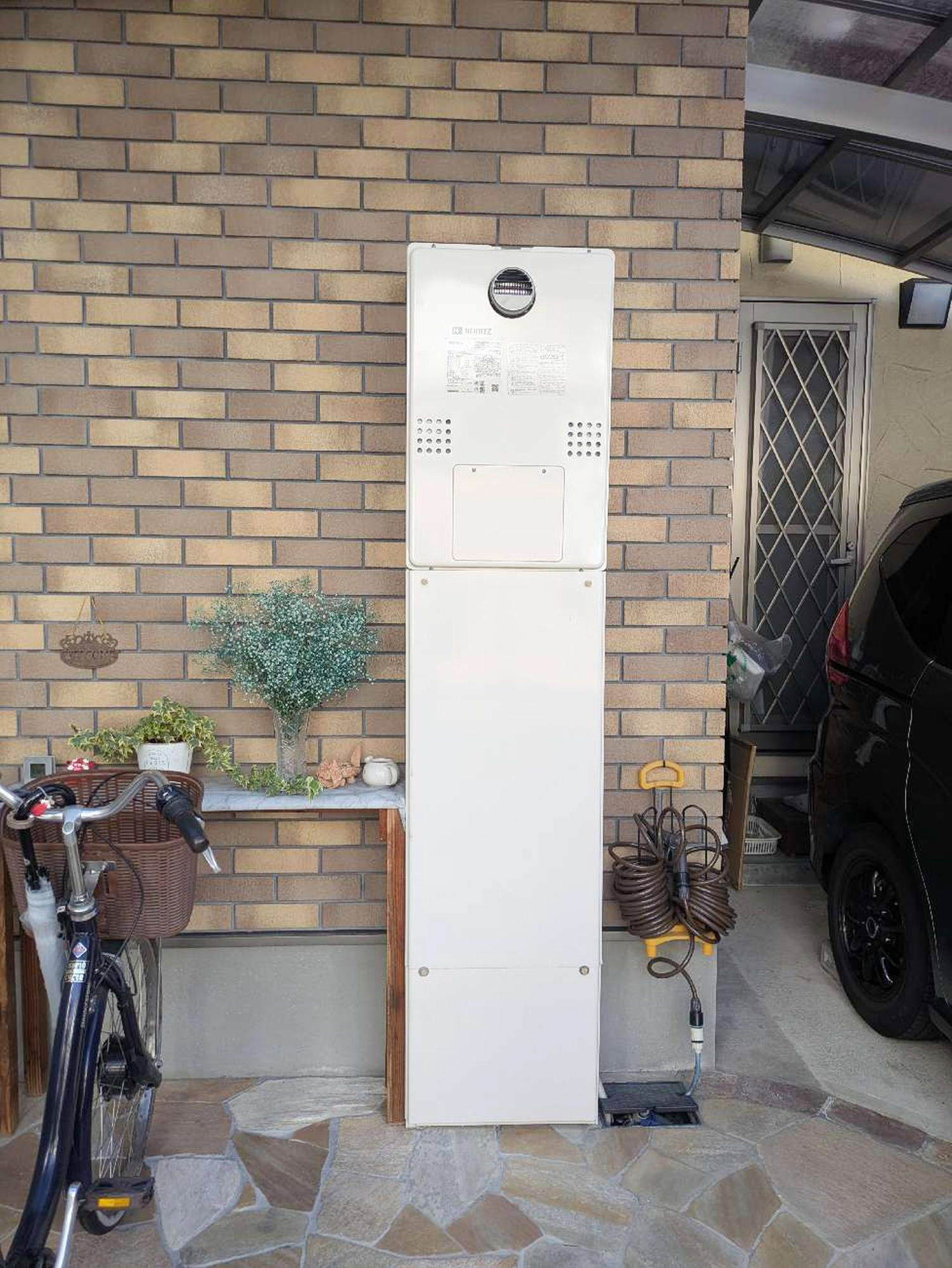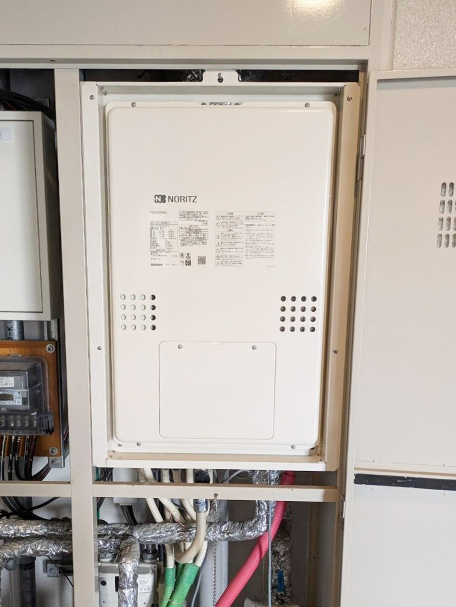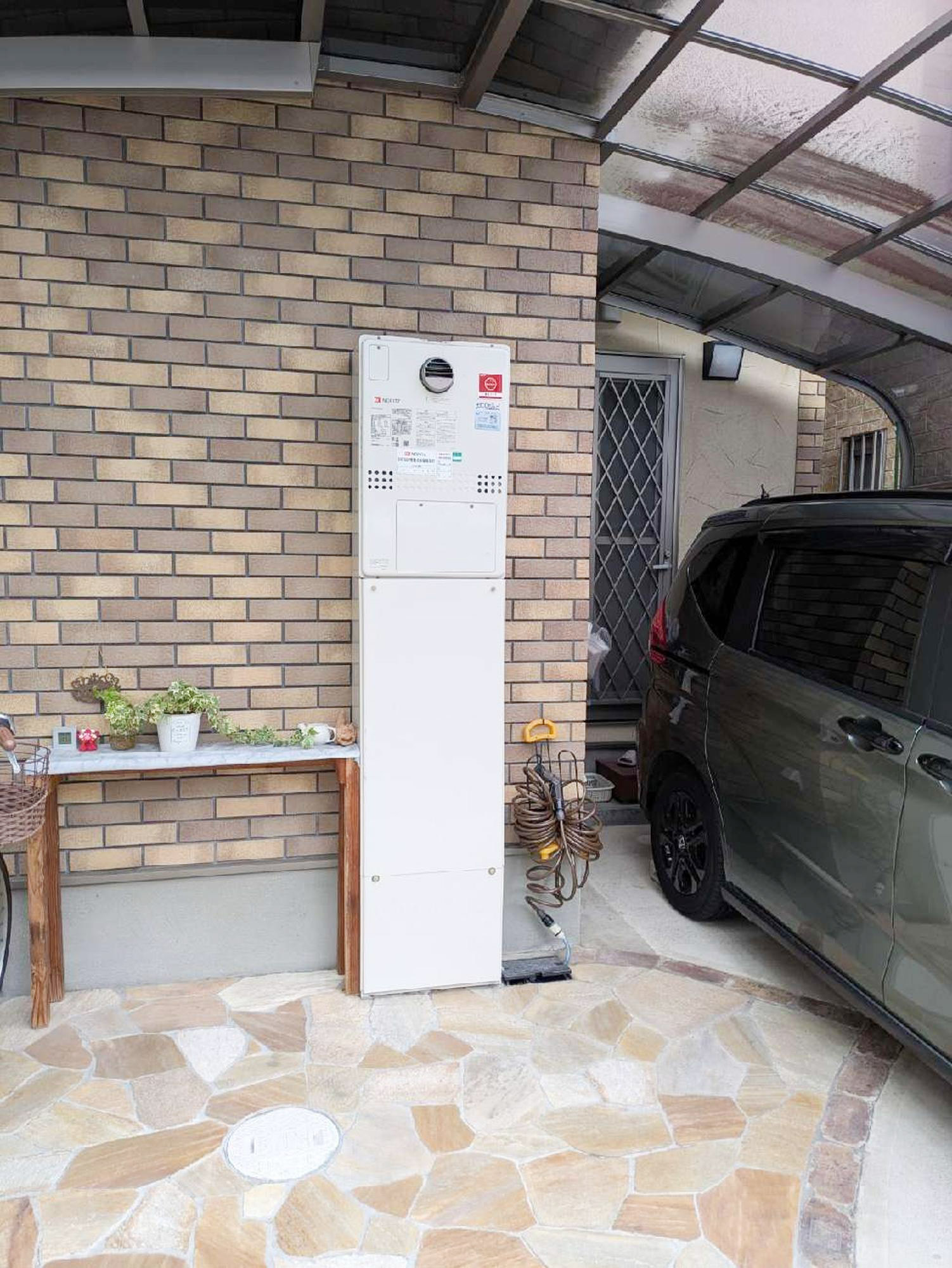 『給湯器工事』です。周辺を汚さず、キレイな状態で工事をさせていただきます。