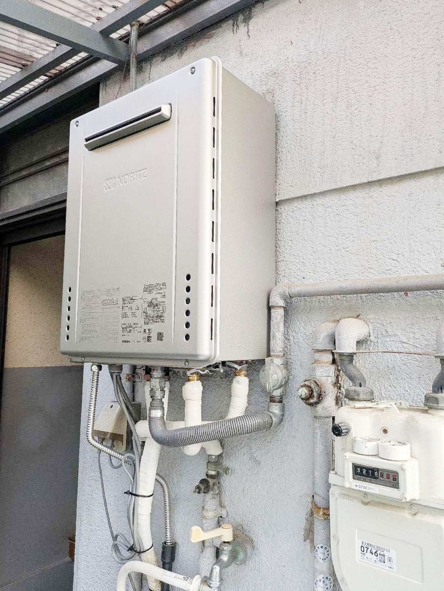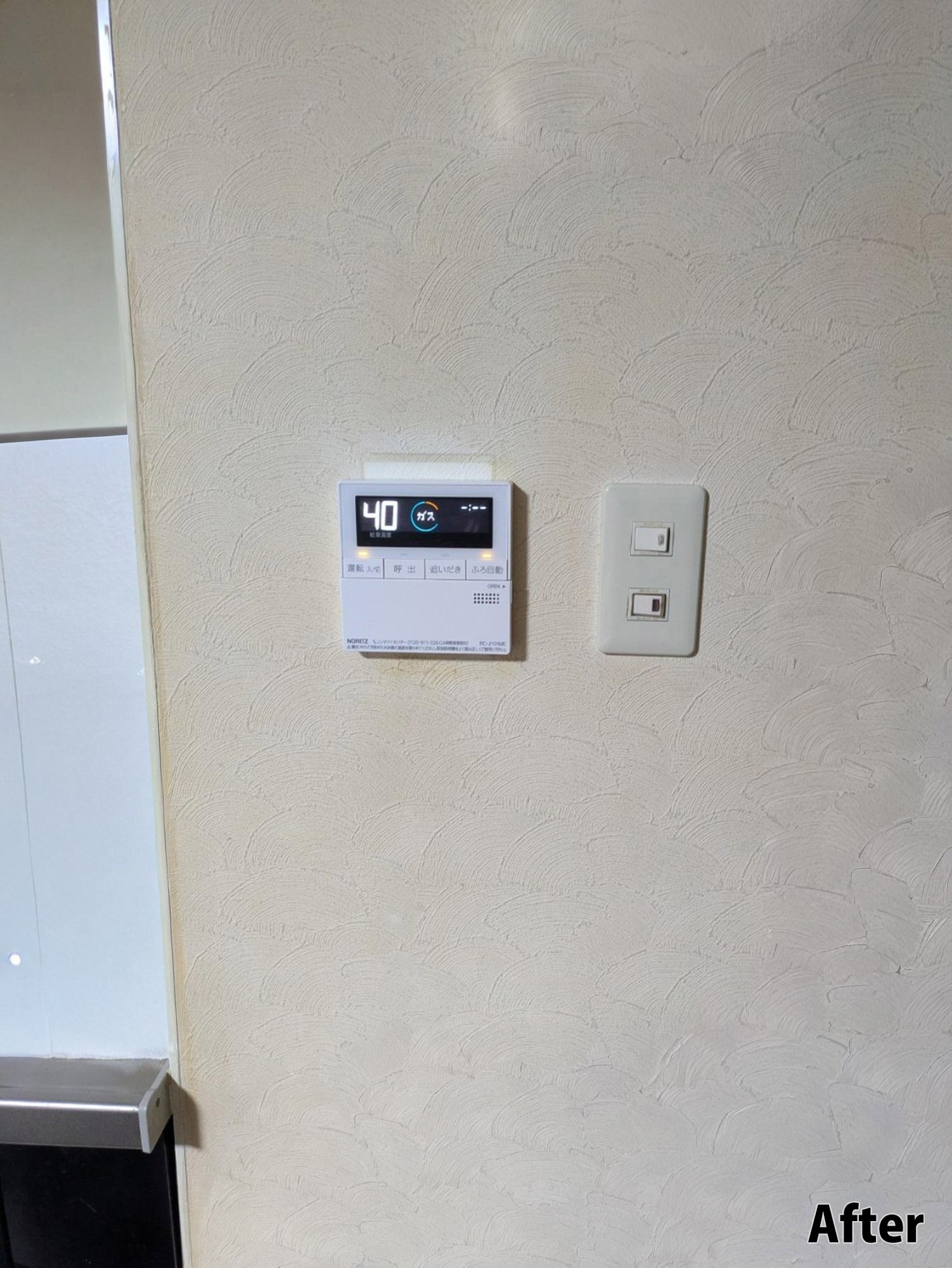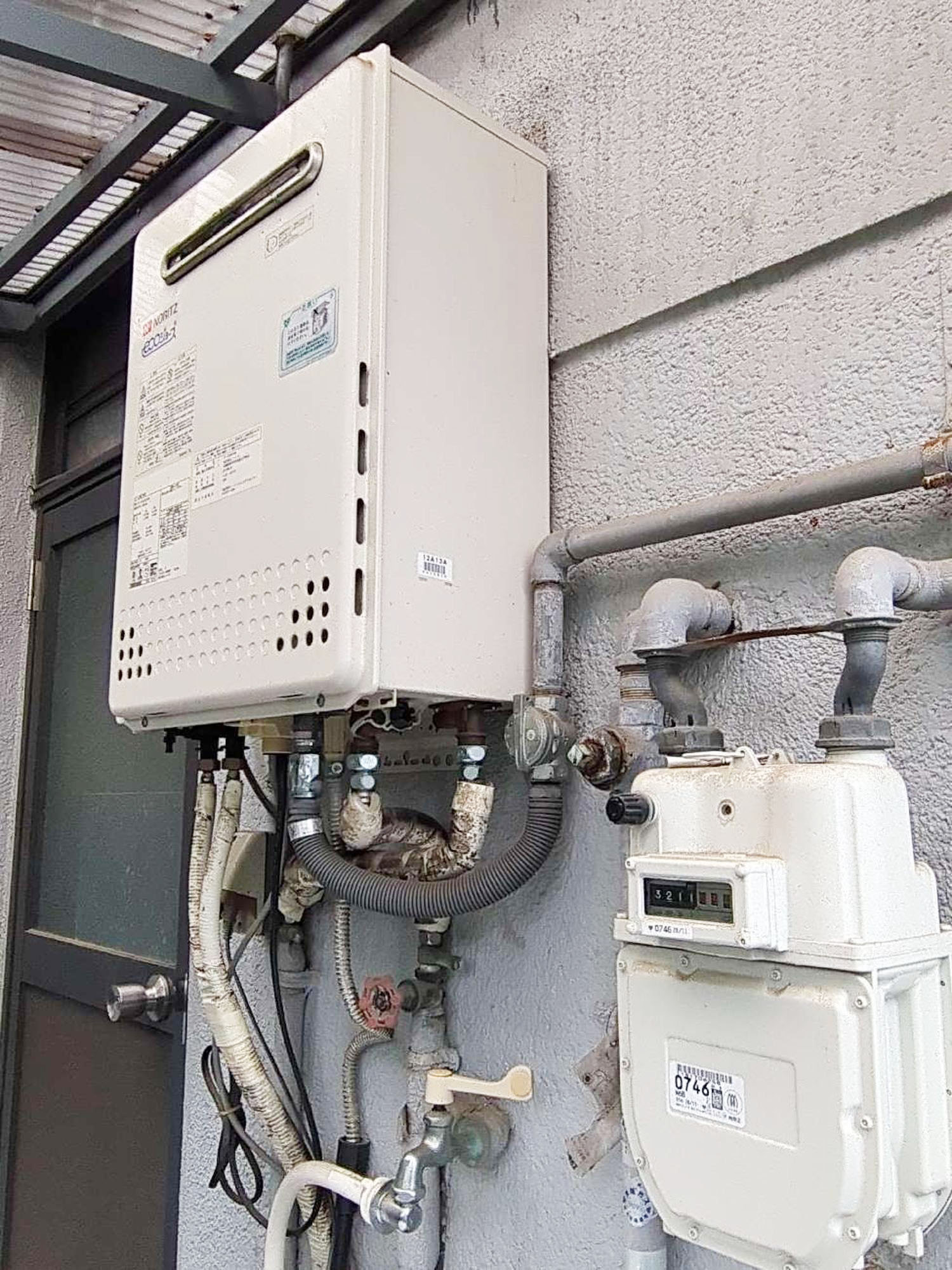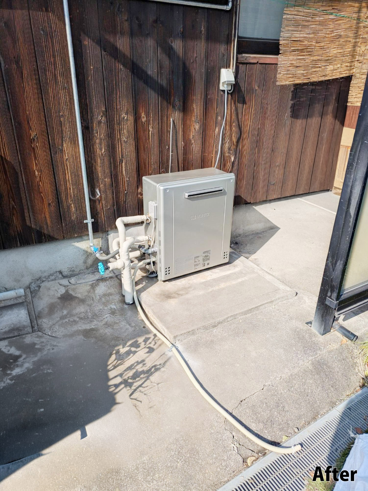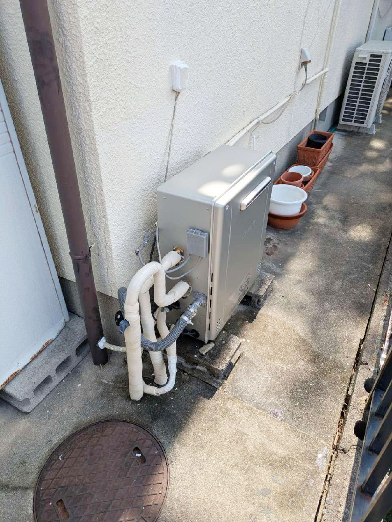 『給湯器工事』です。周辺を汚さず、キレイな状態で工事をさせていただきます。