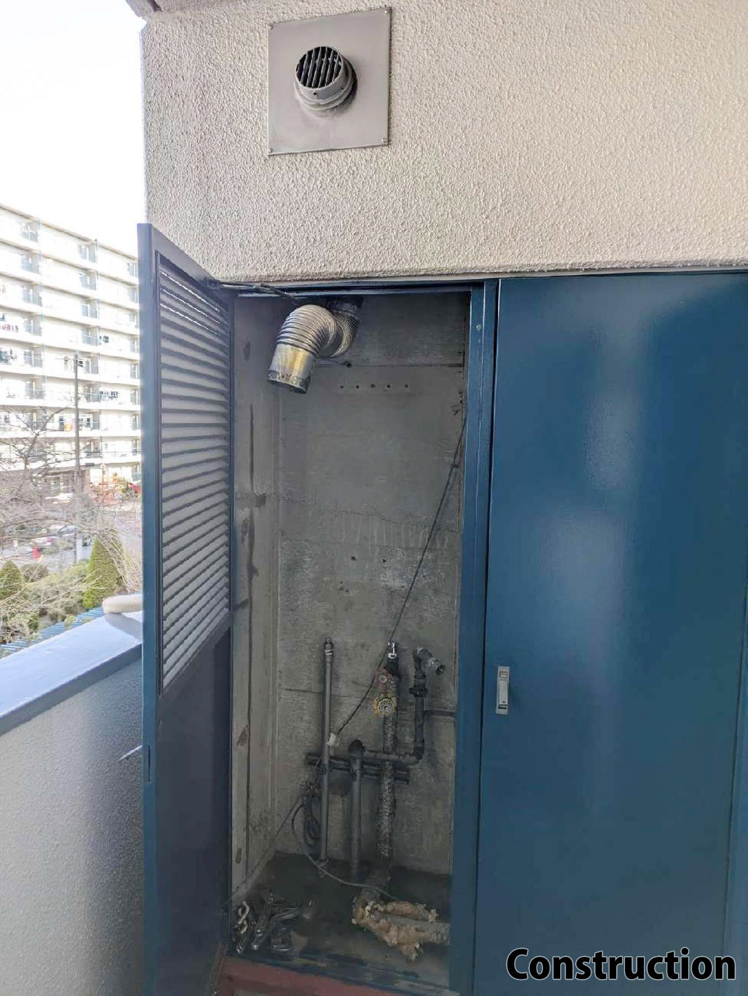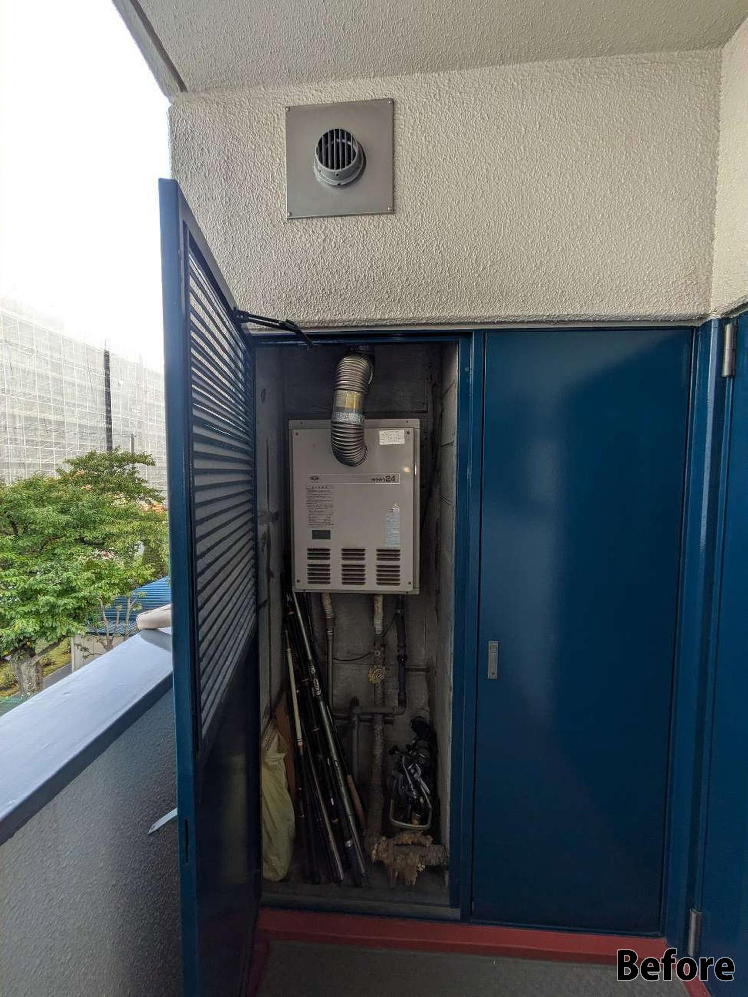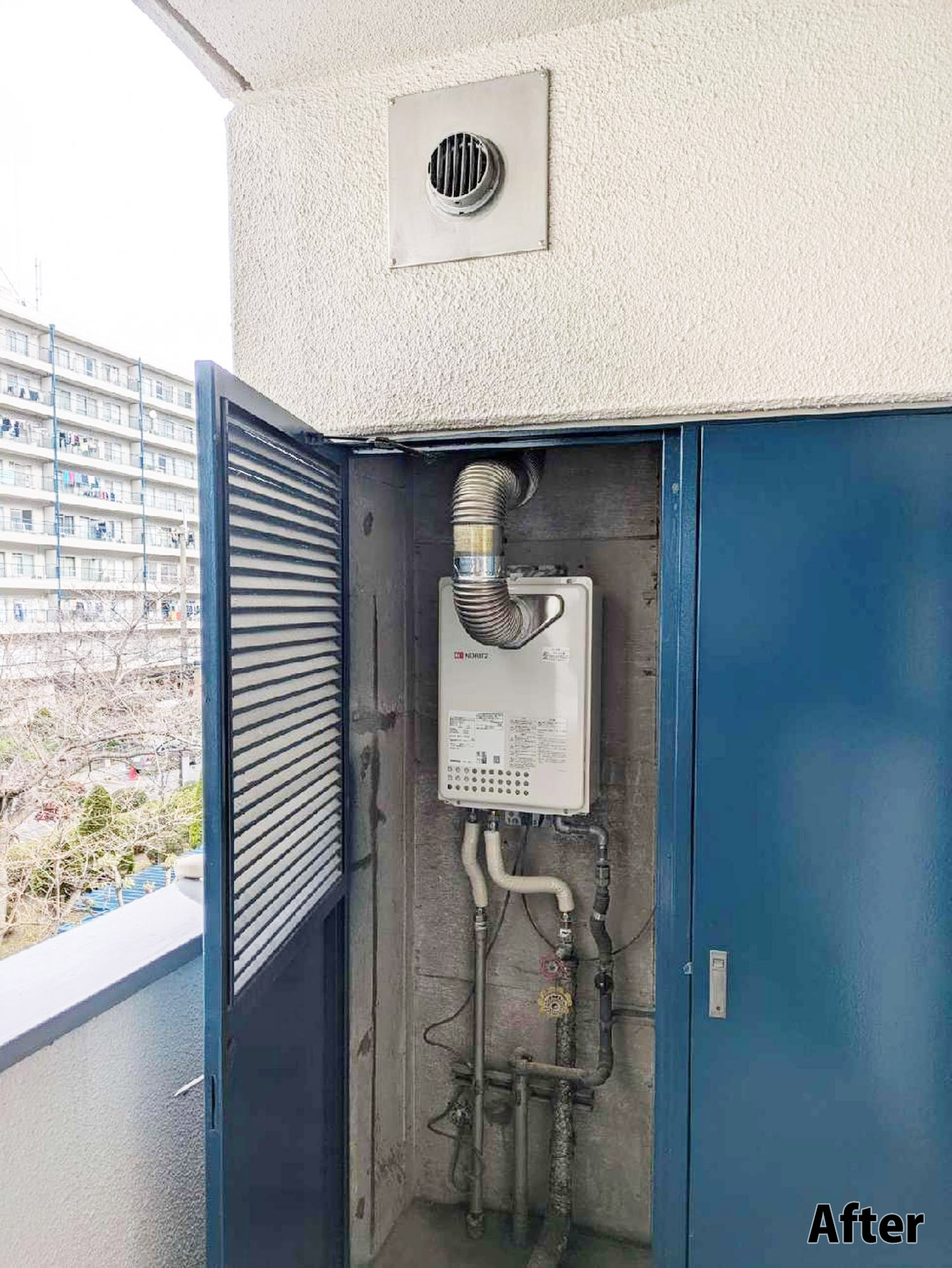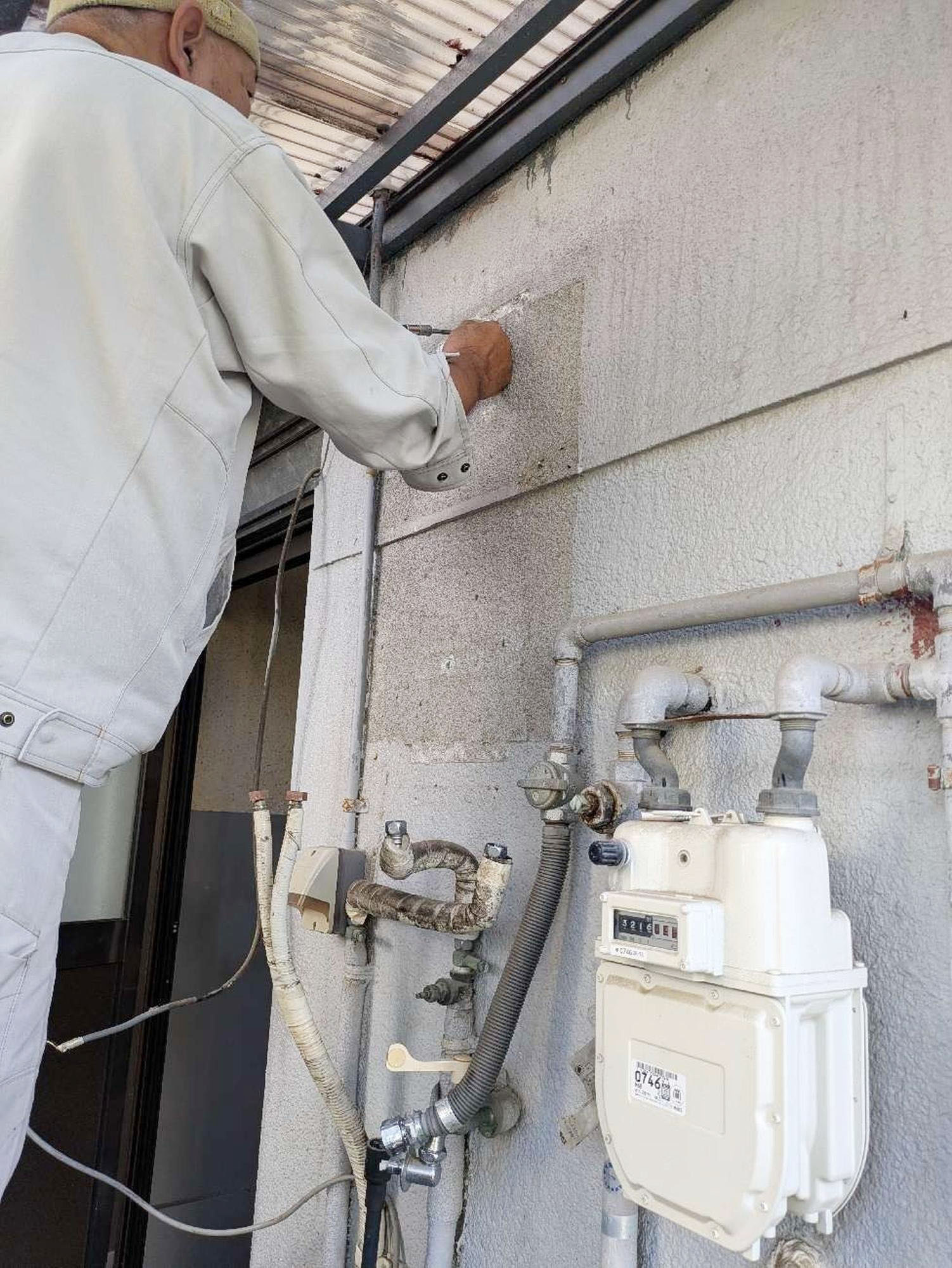 『給湯器工事』です。周辺を汚さず、キレイな状態で工事をさせていただきます。