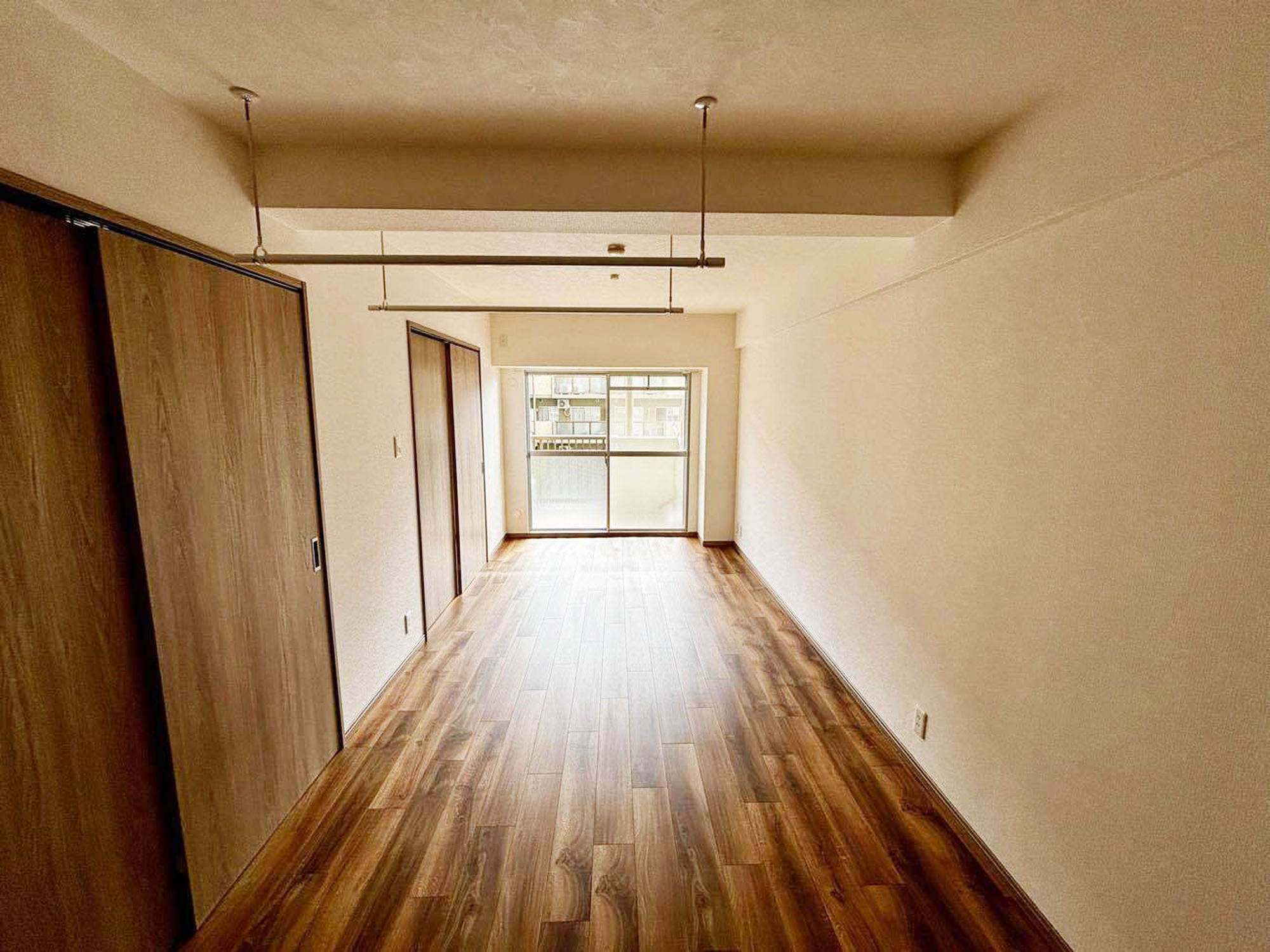 『工事完了』。ウッド調の床 + 建具にチェンジ!空間に統一感が生まれました。