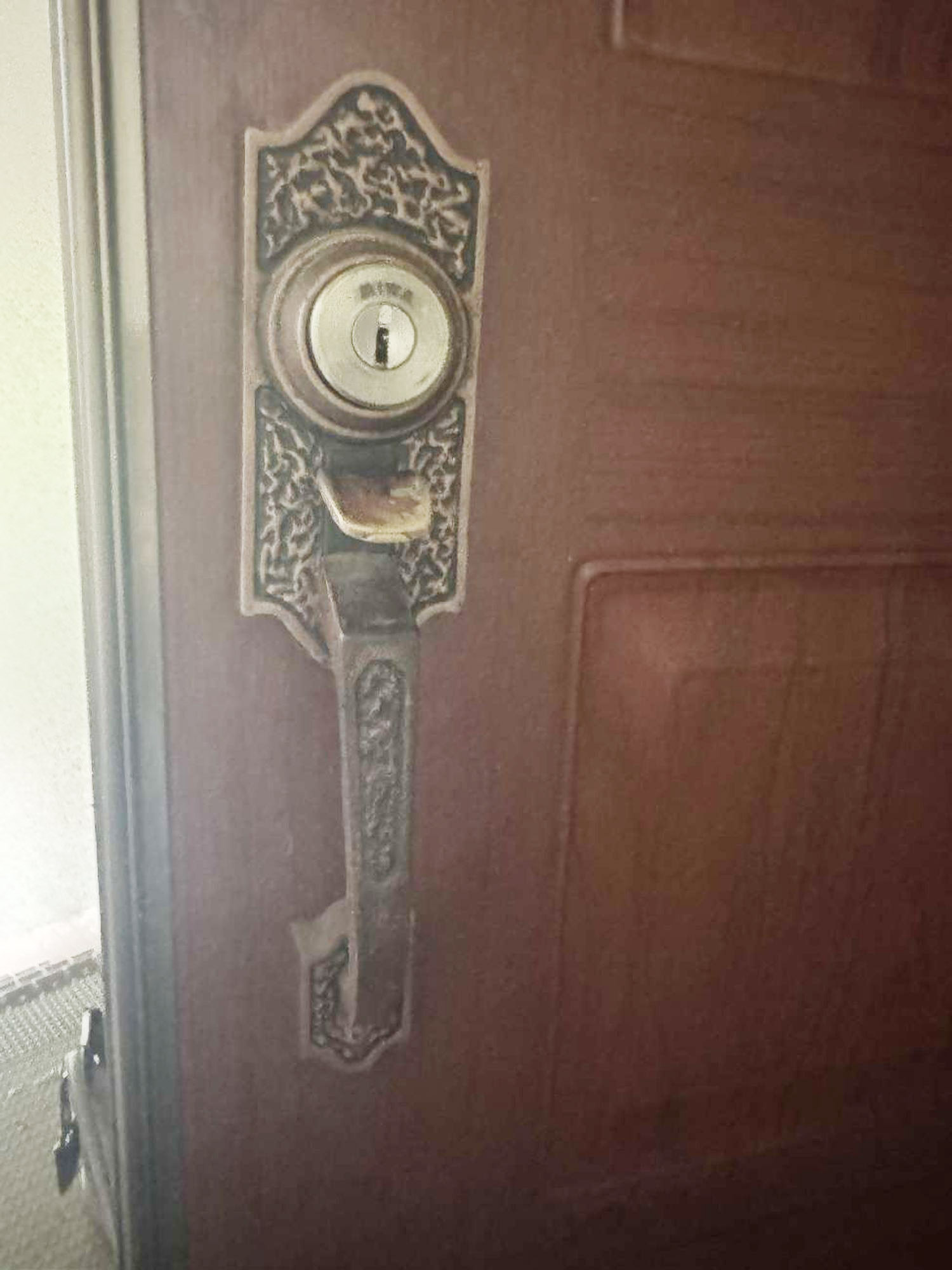 玄関『鍵交換工事』です。どんな仕上がりになるか楽しみ!