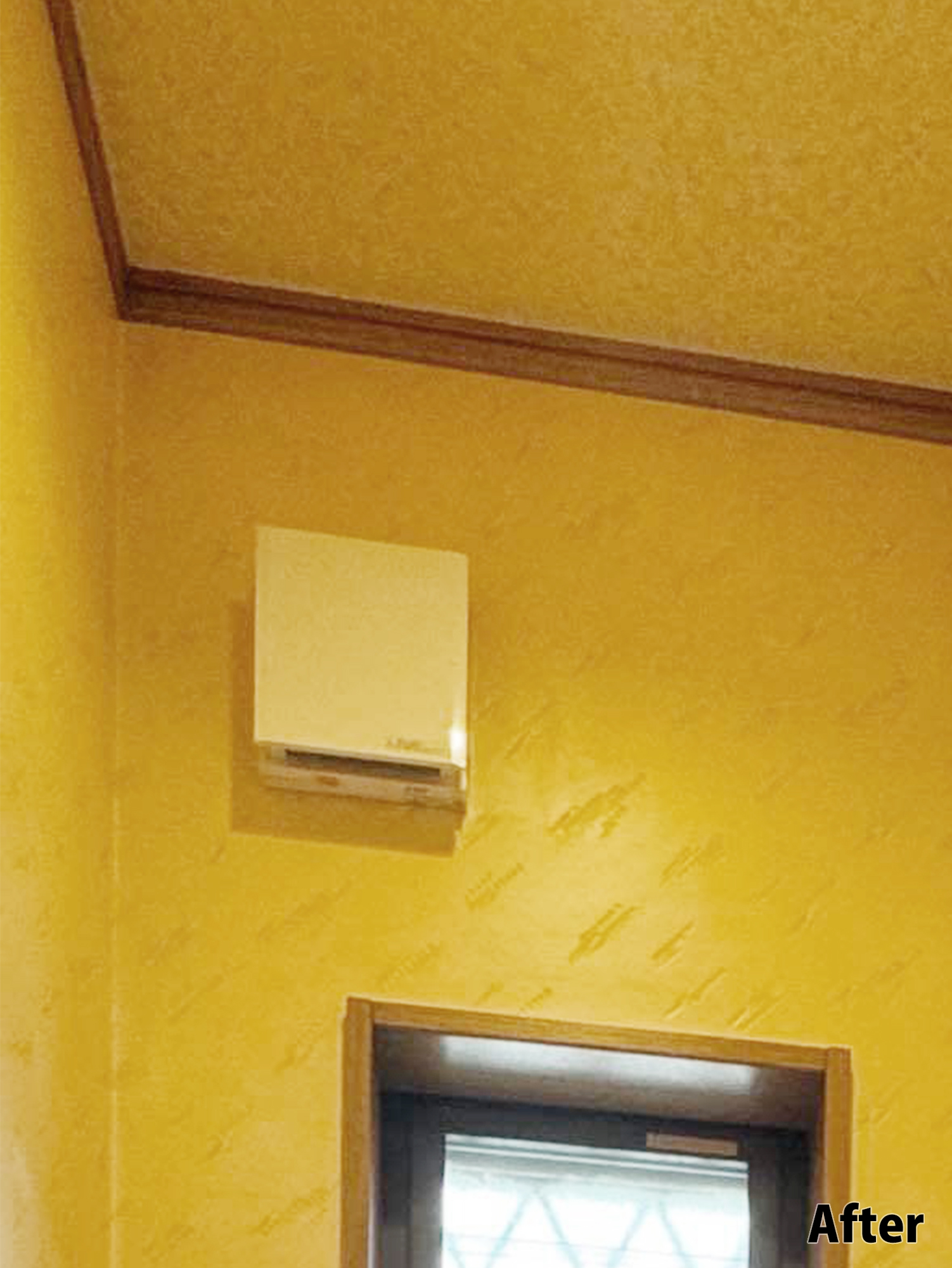 戸建のトイレの壁付け換気扇を交換しました。古い換気扇はデザインも古く、お掃除も大変でした。そこで、すっきりしたデザインの最新機種に入替!お掃除もラクラクになり、毎日快適に過ごせるようになりました。