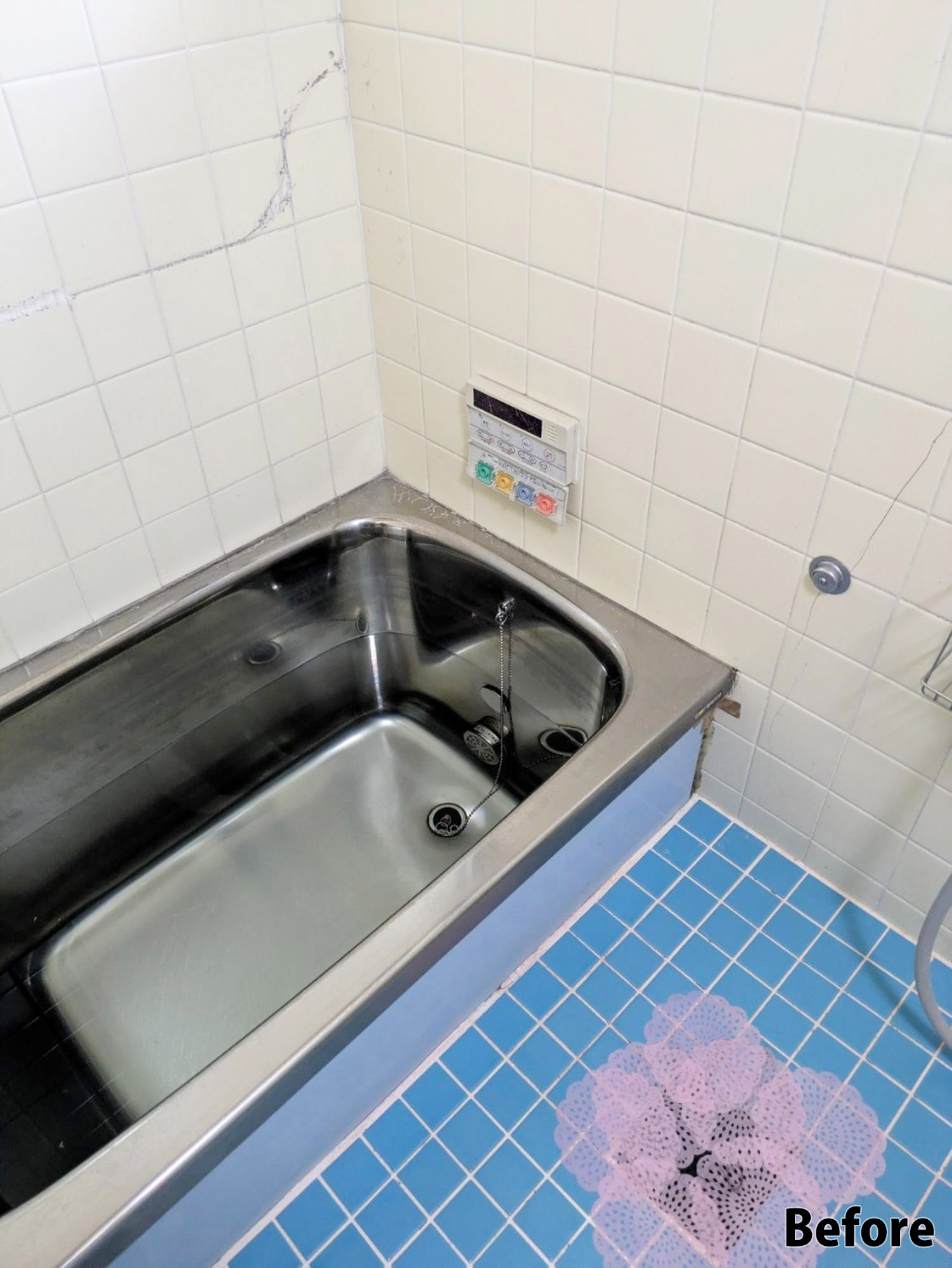 お風呂の『穴開き補修工事』です。水漏れの原因になる内容...どんな仕上がりになるか楽しみ!