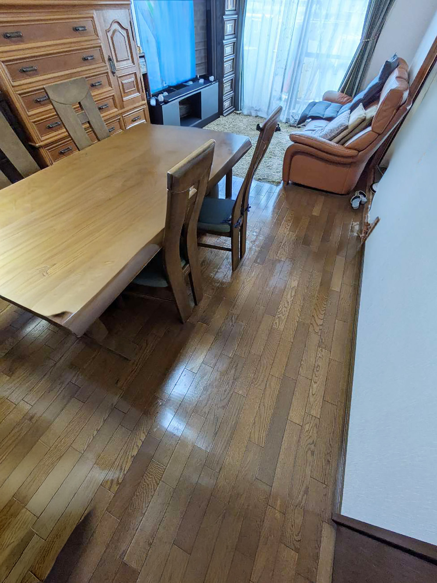 『工事完了』。ライトベージュ調の床チェンジ!空間に統一感が生まれました。