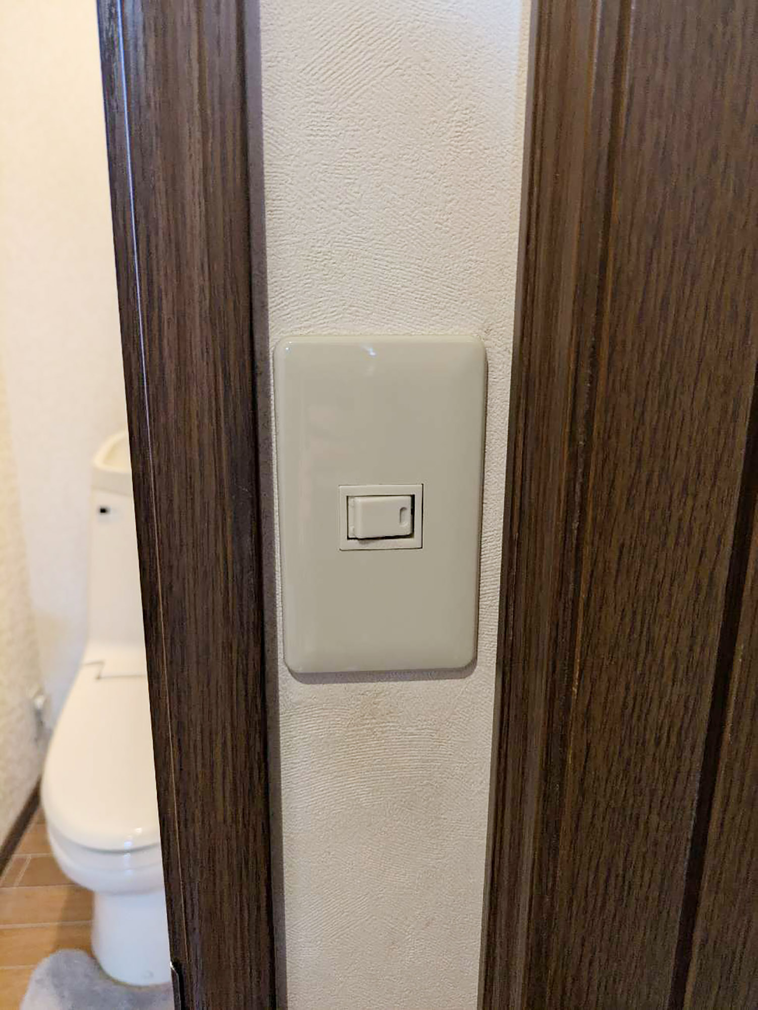 トイレの『電気スイッチ交換工事』です。どんな仕上がりになるか楽しみ!