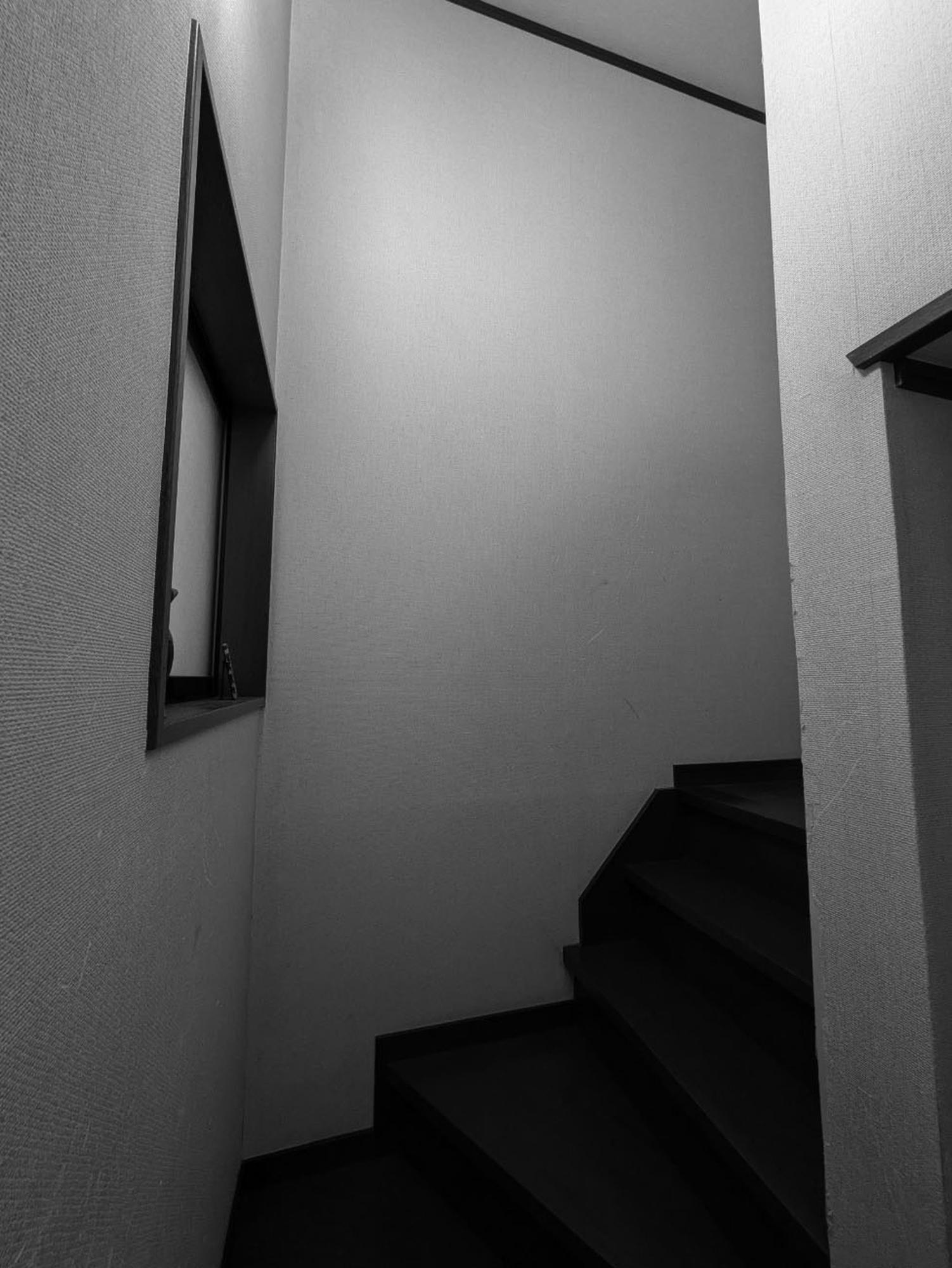 『工事完了』。ダークブラウンテイストの手すりを新設しました。階段・建具カラーと統一されスタイリッシュに。